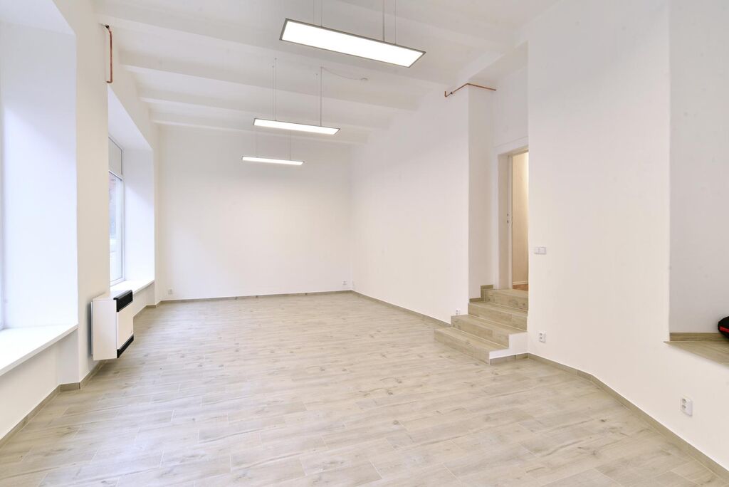 Dominantou prostoru je světlá hlavní místnost o rozloze přibližně 40 m, kterou lze dle potřeb nájemce rozdělit na více částí. Díky tomu se nabízí široké spektrum využití od stylového butiku, showroomu či ateliéru, až po reprezentativní kancelář nebo sídlo menší společnosti.