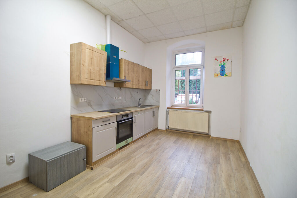 Kuchyně je vybavena kuchyňskou linkou s troubou, varnou deskou a digestoří. V pokoji je pohovka - ta může být vystěhována. Vytápění i ohřev vody zajišťuje plynový kotel.