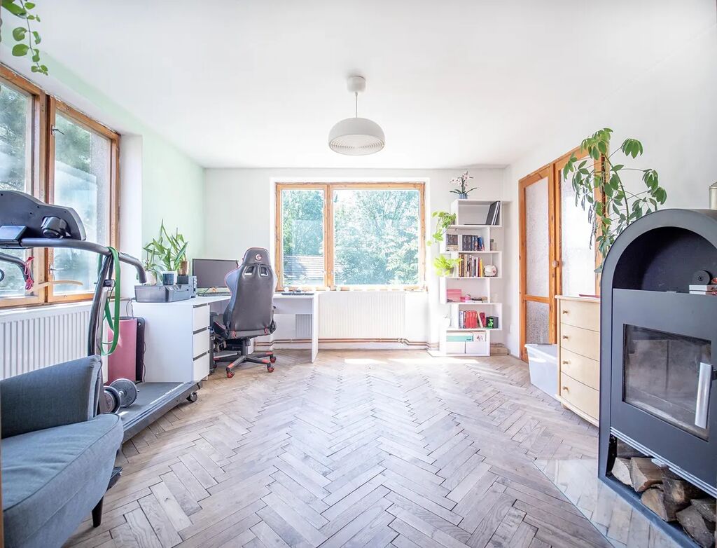 Dům je vytápěn efektivním elektrokotlem, ale milovníci tradičního vytápění ocení i možnost topit na tuhá paliva, což přináší nejen komfort, ale i úsporu nákladů.