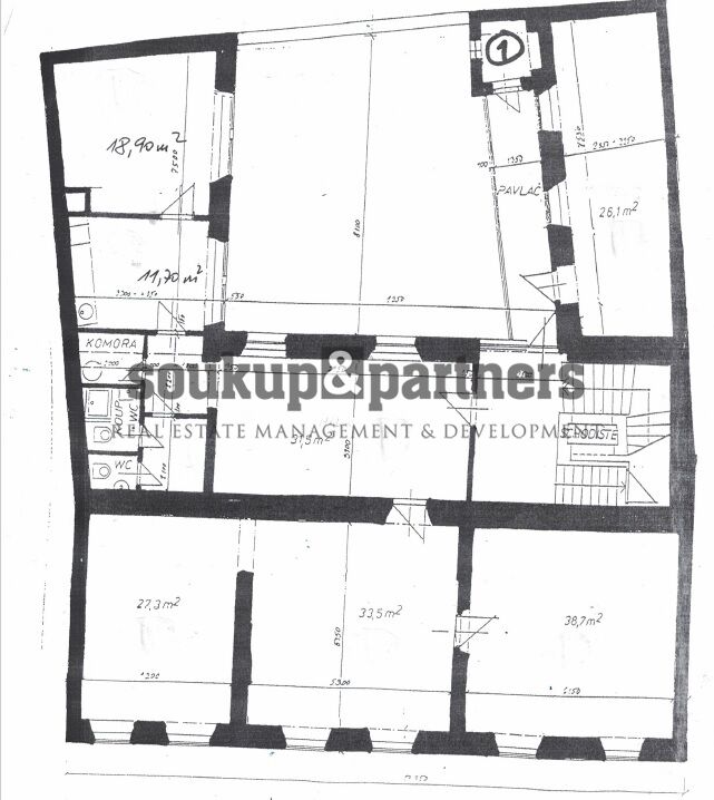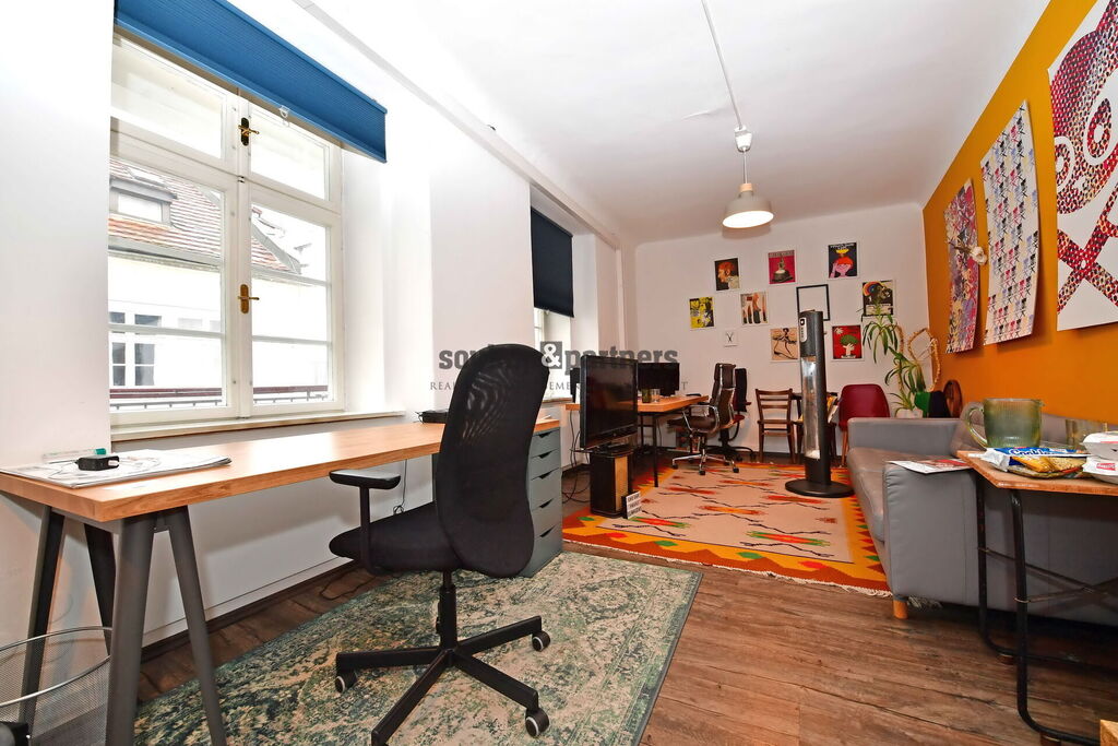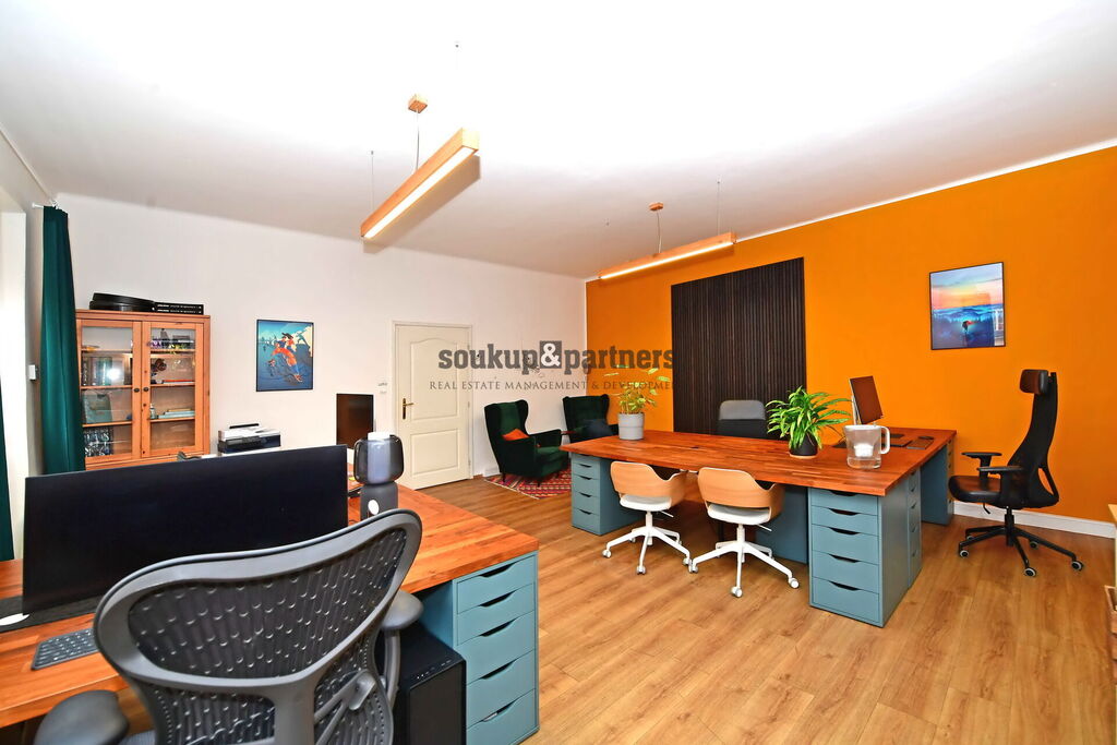 Kanceláře s příslušenstvím - 205 m2, nacházející se ve 3.podlaží historického domu v Praze 1 - Malá Strana. Jedná se o pronájem celého patra. Vhodné na kancelářský provoz, školící centrum, školu, advokátní kancelář apod. Dispozičně je prostor rozdělen na vstupní foyer s recepcí, dále 4 samostatné prostorné kanceláře, místnost s kuchyňským koutem, 2 x toaleta, 1 x sprcha, komora a oddělený prostor se vstupem přes pavlač, kde se nachází další kancelář. Prostory lze však rozdělit na více menších kanceláří. Telefon, internet, počítačová síť - rozvedeno po místnostech. Vybaveno zabezpečovacím systémem. Na podlahách je vinyl v kombinaci s plovoucí podlahou a dlažbou. Po dohodě se současným nájemníkem, lze zanechat vybavení. Volné ihned 1.1. 2026. Nájemné 65.000,-Kč, služby jsou pouze zálohy na vodu, elektřina se převádí na nájemníka, kauce 65.000,-Kč, provize pro RK 65.000,-Kč + dph. Pro více informací volejte manažera nabídky.