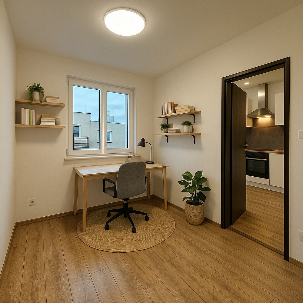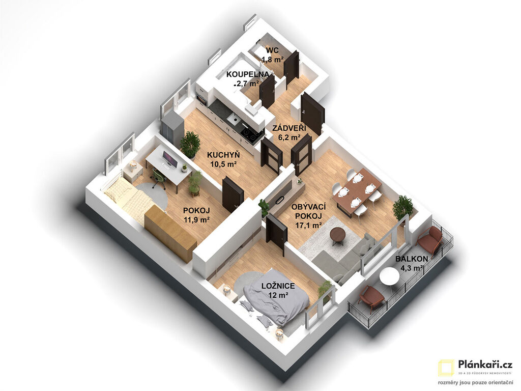 Fotografie obsahují vizualizace možného vybavení pro Vaši lepší představu o zařízení bytu. Pro lepší představu přikládáme i 2D a 3D půdorysy bytu.