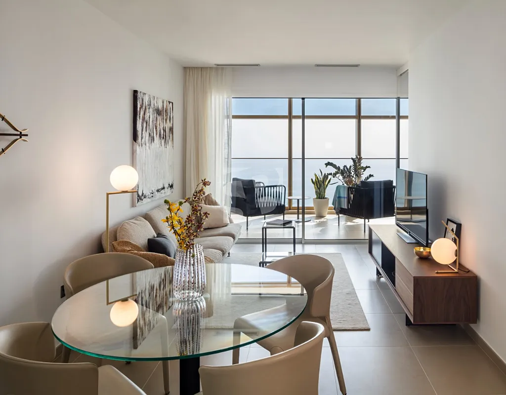 Všechny apartmány jsou orientovány na jihozápad a poskytují nádherný výhled na moře.