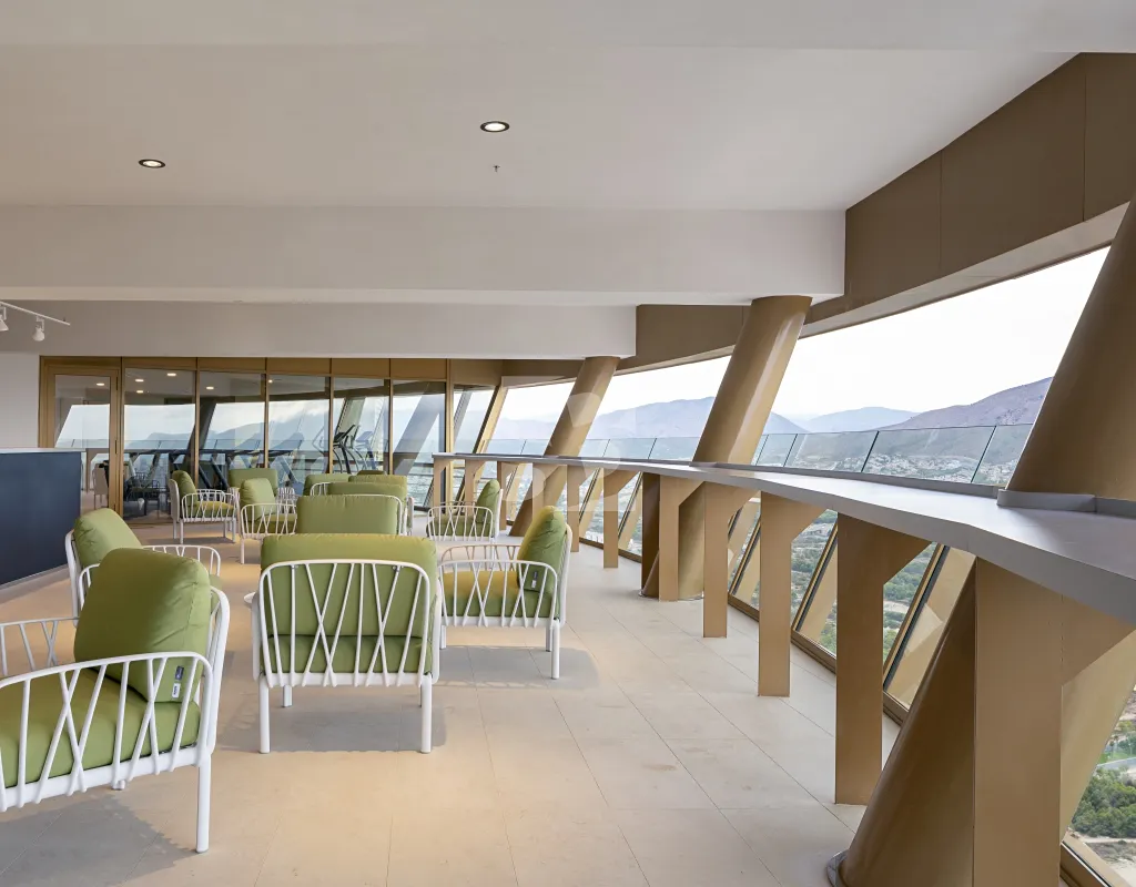 Budova má celkem 47 pater a nabízí spa a vyhřívaný bazén, venkovní bazény, restaurace, fitness zónu a velkolepou vyhlídku.