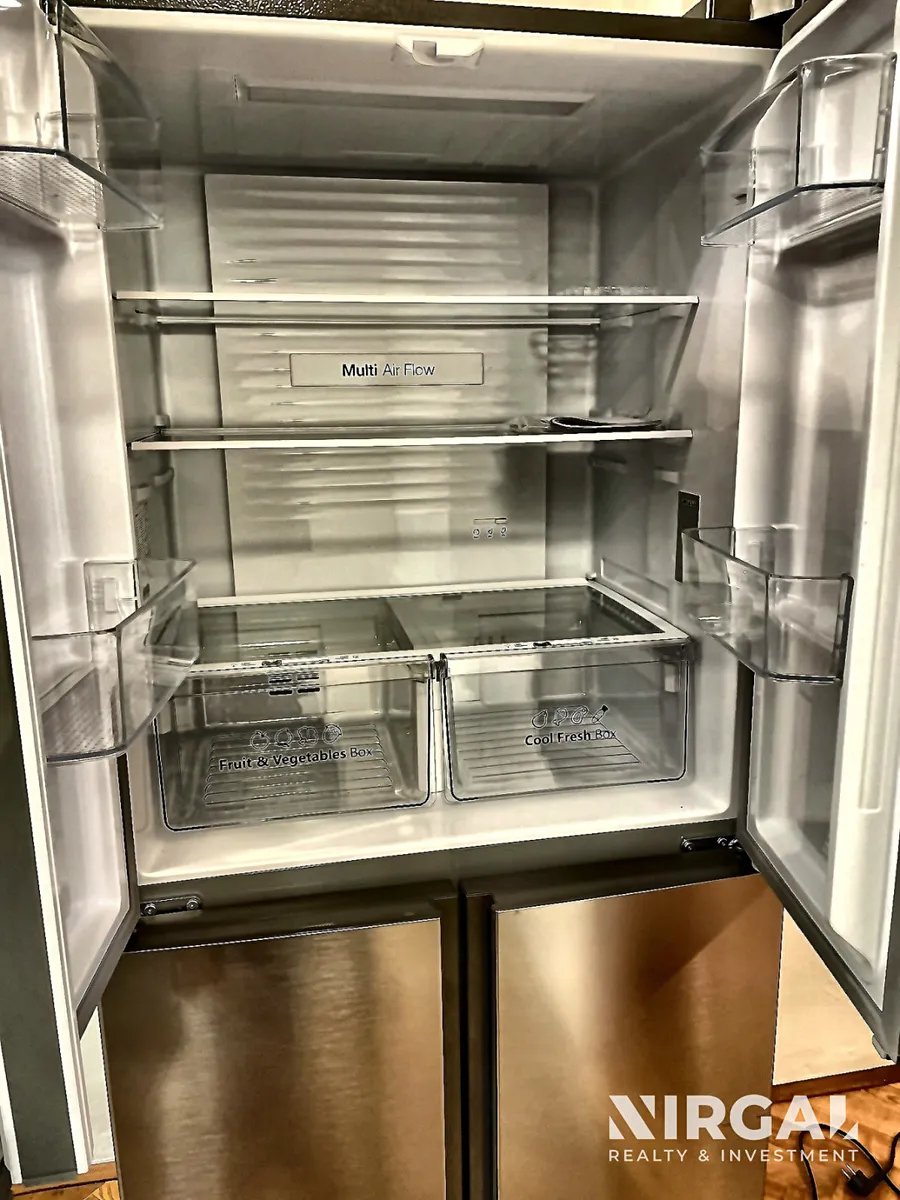 Interiér laděný v jemných tónech nabízí harmonii a dostatek přirozeného světla. Otevřený obytný prostor plynule přechází do kuchyně a jídelní části, ložnice je orientována do klidné ulice. Každý detail působí promyšleně – od designového obkladu kuchyně až po vestavěné úložné prostory z masivu. Ve vybavení bytu nechybí americká lednice s mrazákem, indukční varná deska s digestoří, myčka, pračka ani kávovar.