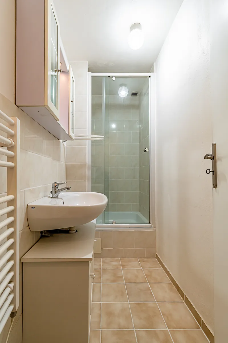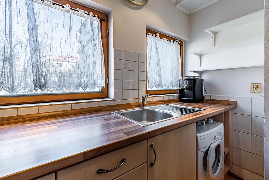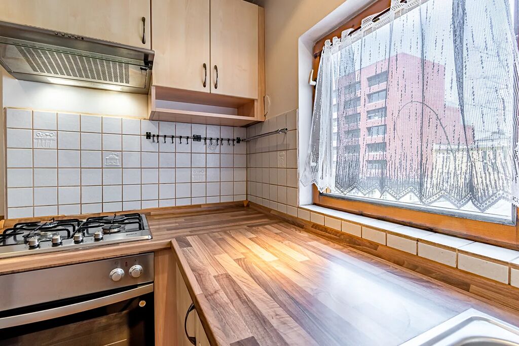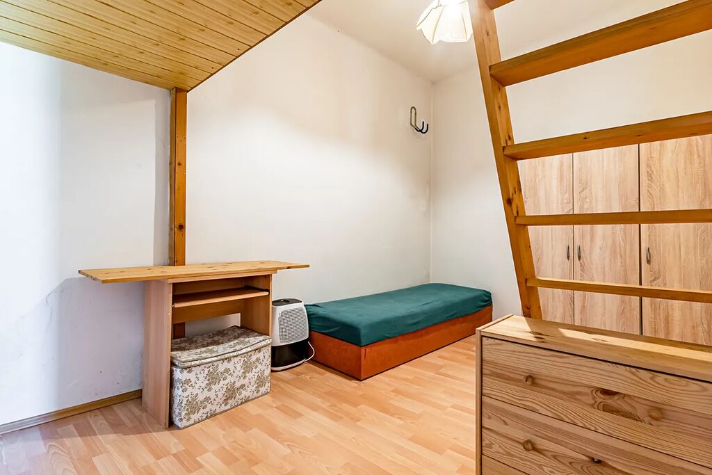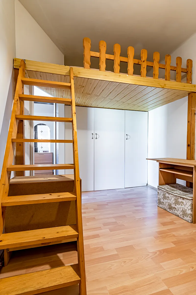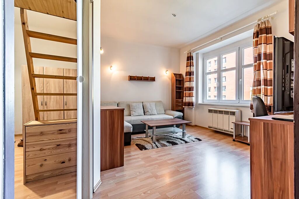 Byt se skládá ze světlého obývacího pokoje, samostatné kuchyně, poté menší ložnice s patrem, která má okno do obývacího pokoje a koupelny se sprchovým koutem. Byt je kompletně zařízený (pouze TV nebude) a lze se dohodnout na případném odstěhováním některého nábytku.