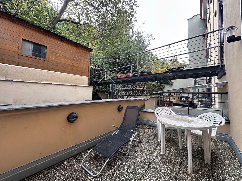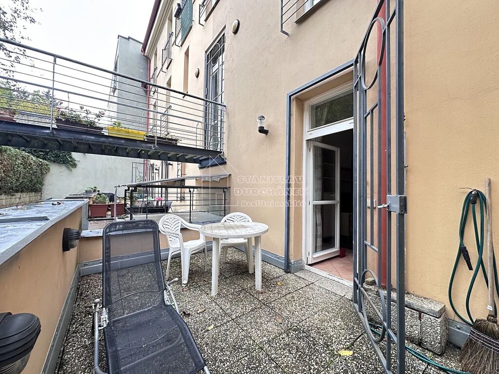 Velkou výhodou je vlastní terasa 9 m2 s orientací do klidné zahrady, kterou můžete spoluužívat (např. pro grilování nebo pěstování květin či zeleniny).