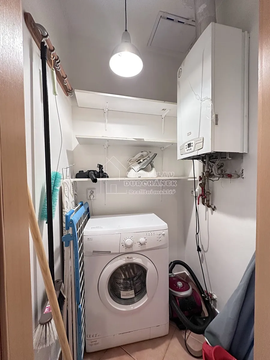 Byt se nabízí jako vybavený nábytkem a spotřebiči (viz foto). Topení a ohřev vody zajišťuje vlastní plynový kotel. V koupelně je sprchový kout, WC a bidet. Plastová okna. Součástí bytu je též komora, kde je umístěna pračka a vlastní plynový kotel na topení a ohřev vody.