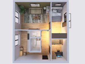 Z jednoho z pokoje je přístup na zasklenou lodžii, která nabízí příjemné místo pro relaxaci a vychutnání si ranní kávy nebo odpoledního slunce. Celková užitná plocha bytu činí 68 m², což poskytuje dostatek prostoru pro pohodlné bydlení.