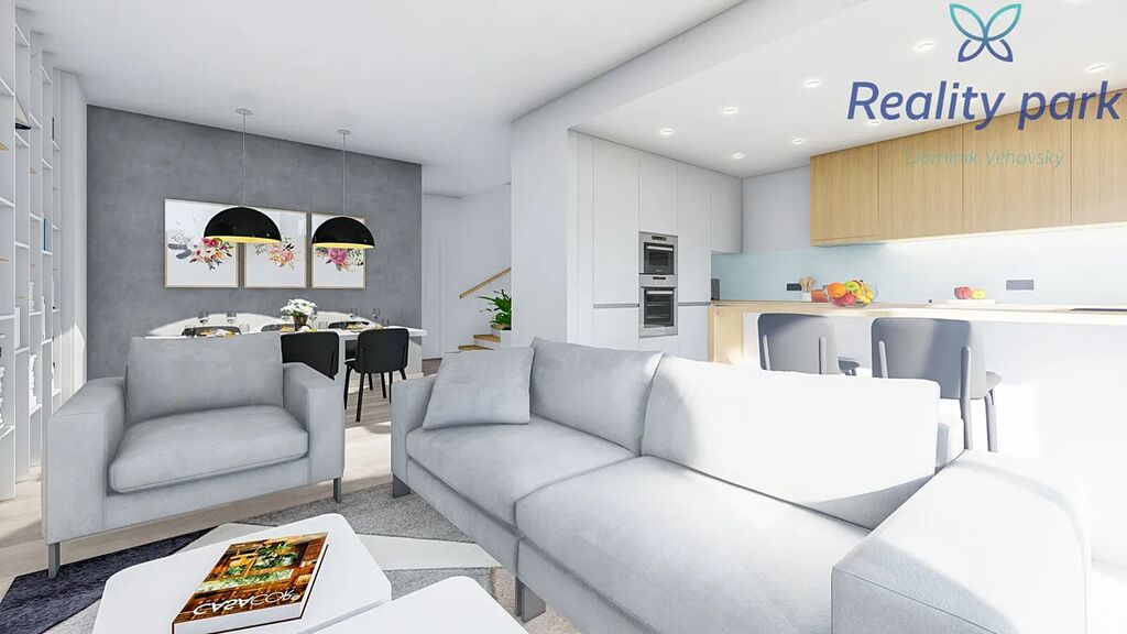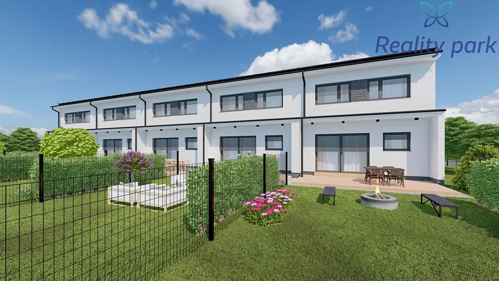 Každý dům má vlastní pozemek zahrady (pozemky s výměrou od 230 m2), před domem pak dvě parkovací stání.