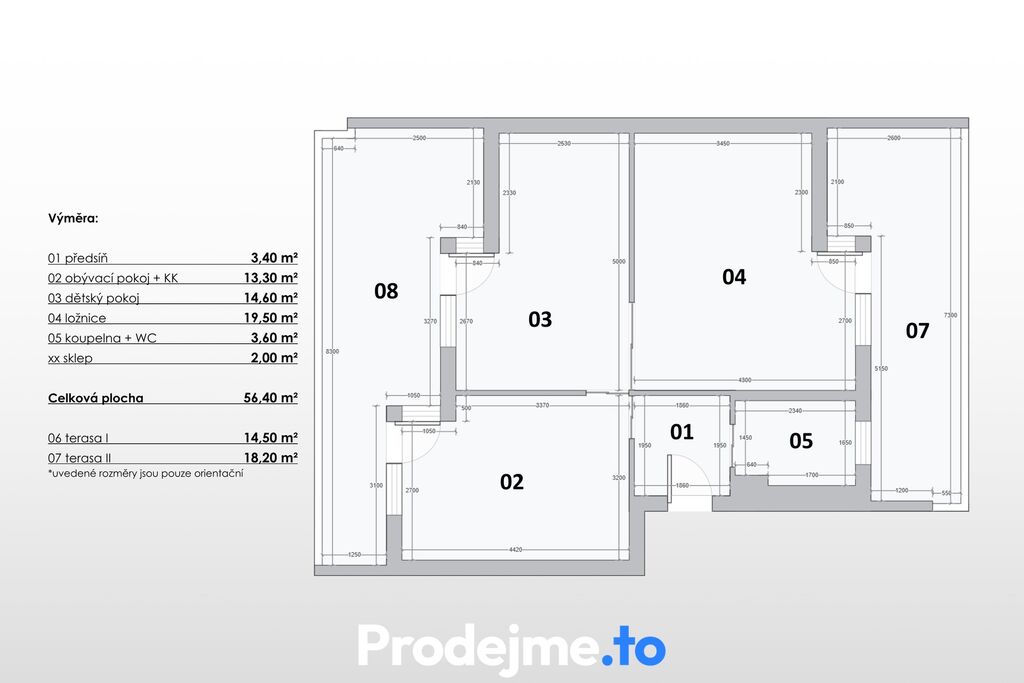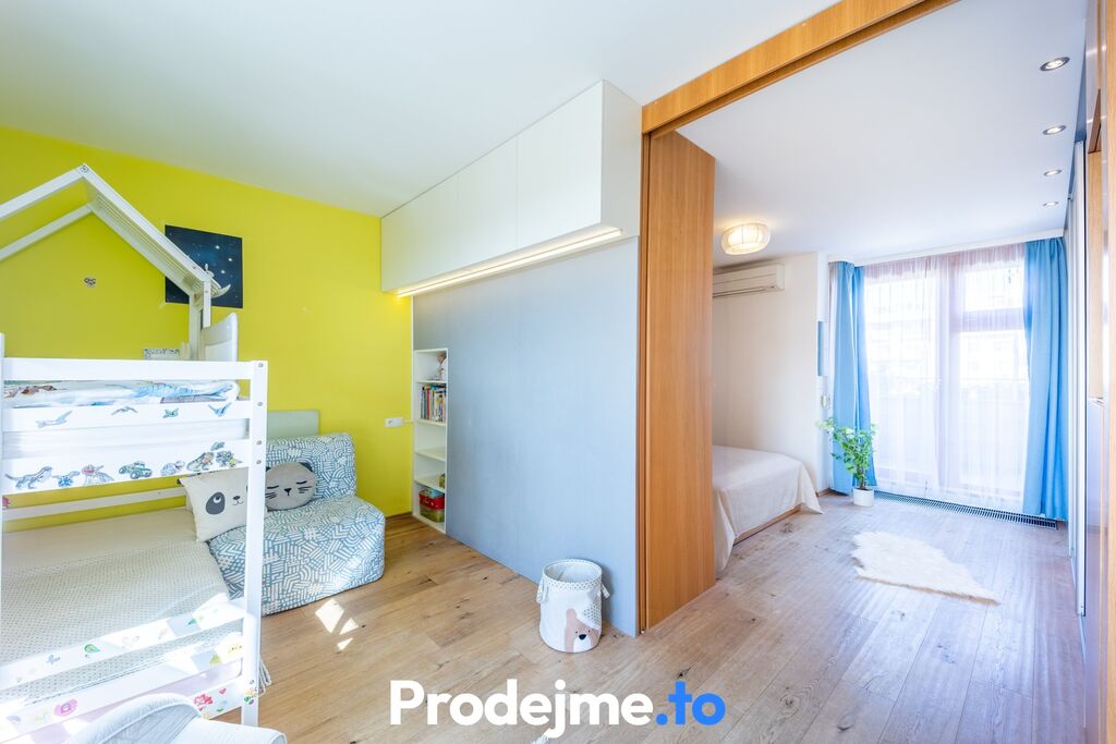 Byt tvoří obývací pokoj s kuchyňskou linkou, ložnice, dětský pokoj a dvě prostorné terasy. Nechybí ani koupelna s vanou a toaletou. Díky vestavěnému nábytku je v bytě dostatek úložných prostor, navíc k němu patří sklep o velikosti 2 m2 a k dispozici je i společná kolárna.