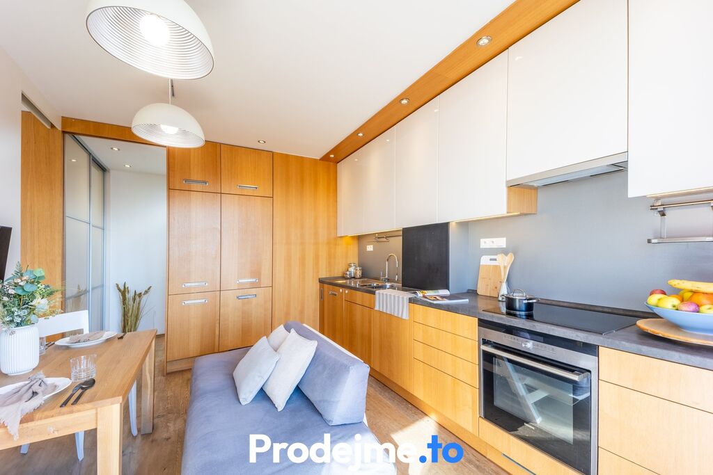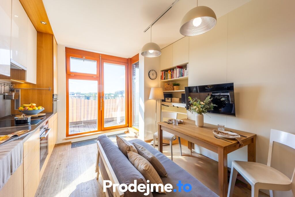 Tohle je důkaz, že i menší byt může nabídnout opravdu komfortní bydlení. Každý centimetr podlahové plochy je tady chytře využitý, takže se tu pohodlně zabydlí i rodina. Vítejte na Žižkově – v ulici Květinková na vás čeká střešní byt 2+kk s 54,4 m2 podlahové plochy a dvěma velkými terasami, které díky jejich umístění v posledním patře nabízejí příjemné soukromí.