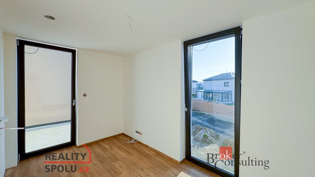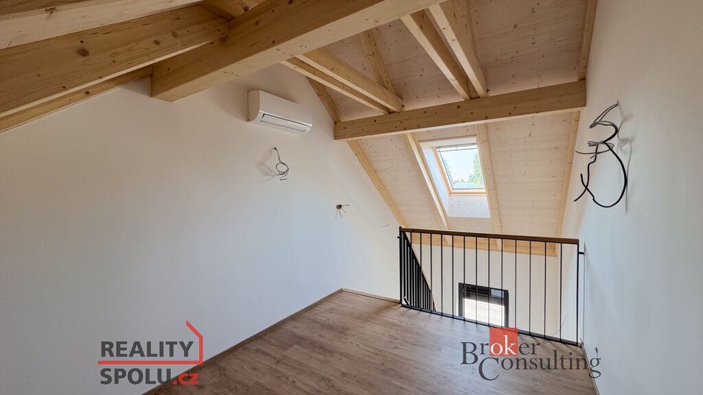 V druhém podlaží je chodba, dvě ložnice, šatna, koupelna s technickou místností a vstup do mezonetových prostor v podkroví, které nabízejí originální kombinaci pracovny a ložnice.