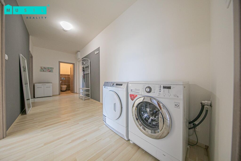 Nabízíme pronájem novostavby krásného cihlového bytu o dispozici 3+kk s prostornou terasou nacházející se v bytovém domě na ulici Aloise Rašína v Olomouci. Reprezentativní prostorný byt o výměře cca 75,00 m2 se nachází ve třetím patře domu s výtahem. Vkusná kuchyňská linka vyrobena na míru je vybavena veškerými spotřebiči, novému nájemníkovi bude k dispozici: lednice s mrazákem, indukční varná deska s digestoří, myčka nádobí, mikrovlnná a elektrická trouba. Na kuchyňský kout plynule navazuje jídelní část a obývací pokoj. Koupelna je vybavena vanou a umyvadlem. Samostatné WC. Pračka a sušička nacházející se ve vstupní chodbě nemovitosti, může po dohodě také zůstat pro následné užívání. Prostorná vstupní chodba nabízí místo pro úložné prostory. Ložnice zůstává vybavena šatní skříní. Dětský pokoj bez zařízení. Nový nájemník určitě ocení terasu o výměře cca 20 m2, která nabízí místo pro odpočinek po náročném pracovním dni. Na oknech jsou instalovány elektrické žaluzie, které zajistí dostatek stínu a chládku při horkých letních dnech. K nemovitosti je k dispozici velká komora, nacházející se přímo naproti bytu. Jedná se o velmi pěkné rodinné bydlení, které čeká na své nové nájemníky. Výborná lokalita obklopená zelení, v těsné blízkosti nákupního centra OC City a Globus, MHD v dosahu. Venkovního parkovací stání za příplatek 1.000Kč/měsíčně. Cena: 20.900 Kč + energie 3056,- Kč / měsíc. Vybírána kauce ve výši dvou měsíčních nájmů. Volné od 31.11.2025.