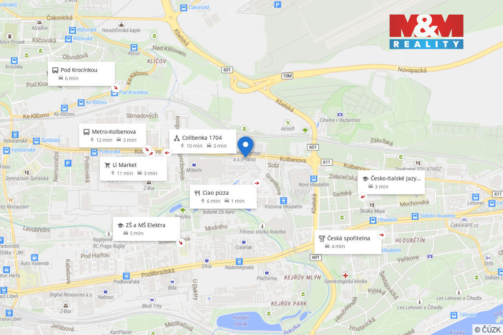 Výborná dostupnost – stanice metra B Kolbenova jen pár minut pěšky. V okolí veškerá občanská vybavenost, parky, restaurace i obchody. Klidné, nově rozvíjející se místo s perfektním napojením na centrum města.