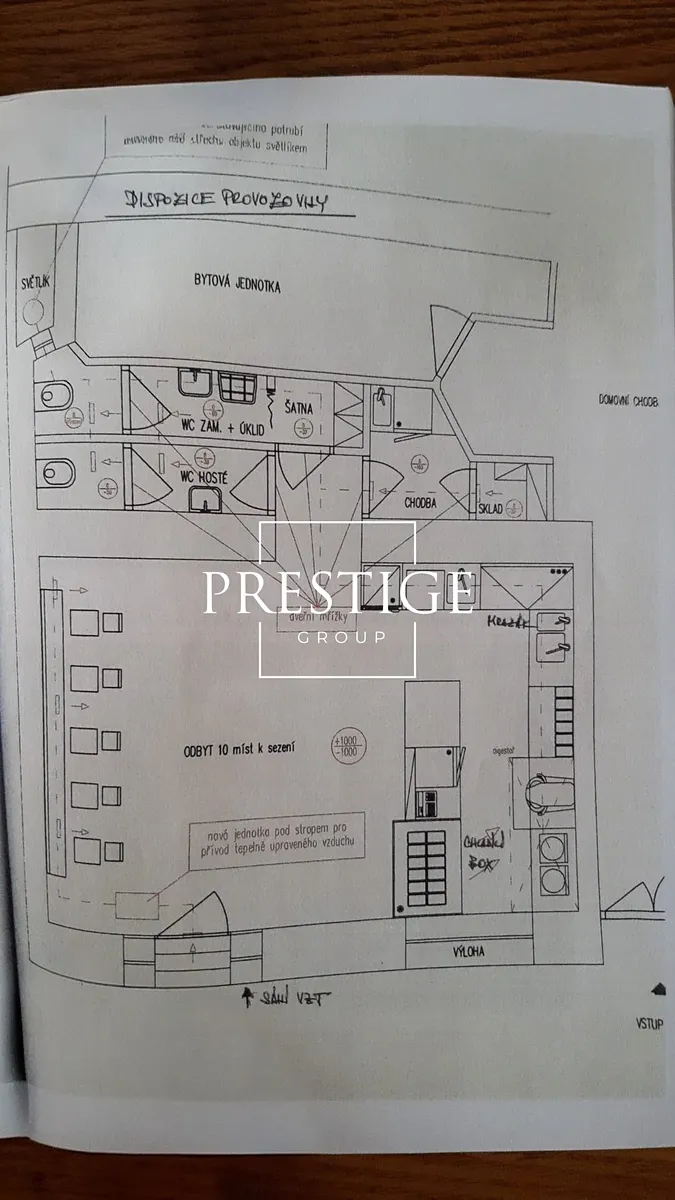Restaurace je plně vybavena pro přípravu pizzy, ale po prodloužení vzduchotechniky je zde i možnost přidat kebab a různé jiné druhy kuchyně. Do kuchyně je zaveden plyn, je možnost instalace plynového zařízení.