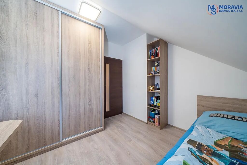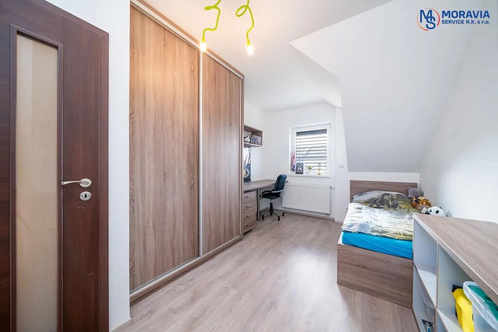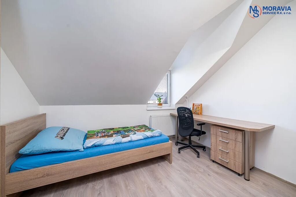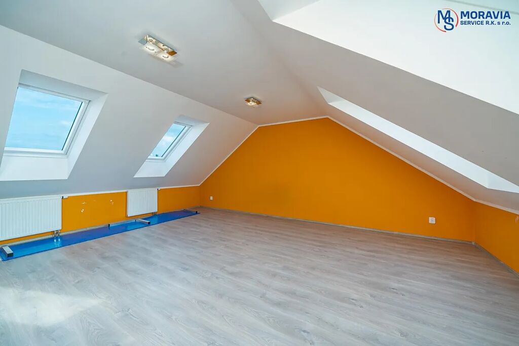 V prvním patře naleznete dva dětské pokojíčky, ložnici a koupelnu s vanou pro maximální pohodlí. Velká místnost v patře je aktuálně využívána jako posilovna a herna, což nabízí skvělé možnosti pro volnočasové aktivity. Součástí domu je také garáž, která poskytuje komfortní parkování.