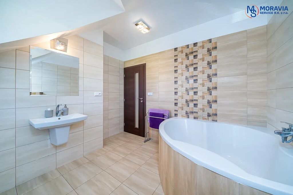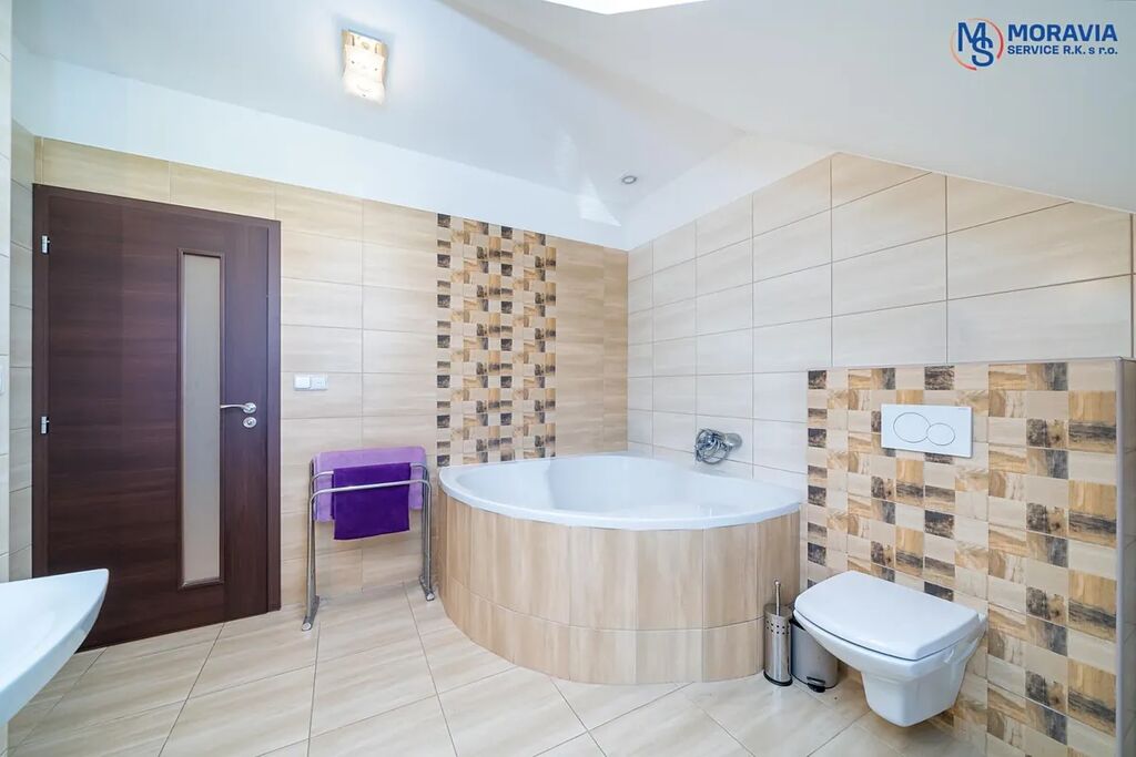 Dispozice domu je 6+kk, což poskytuje dostatek prostoru pro velkou rodinu. V přízemí se nachází luxusní a prostorná kuchyně, která je ideální pro milovníky vaření, a obývací pokoj s krbem, který vytváří útulnou atmosféru pro rodinné večery. Dále je zde koupelna se sprchovým koutem a samostatné WC, stejně jako pracovna, která může sloužit jako domácí kancelář.