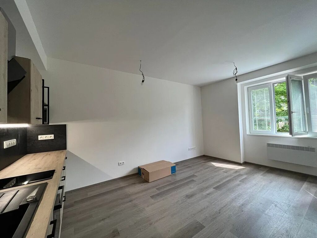 Dispozice: vstupní chodba, samostatné WC, koupelna s vanou a centrální pokoj s kuchyňskou linkou. Dále k bytu náleží sklep a možnost užívání společného, udržovaného dvorku. PENB: G (není zpracováno). V blízkosti velmi dobrá občanská vybavenost