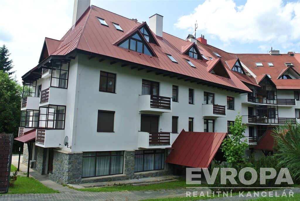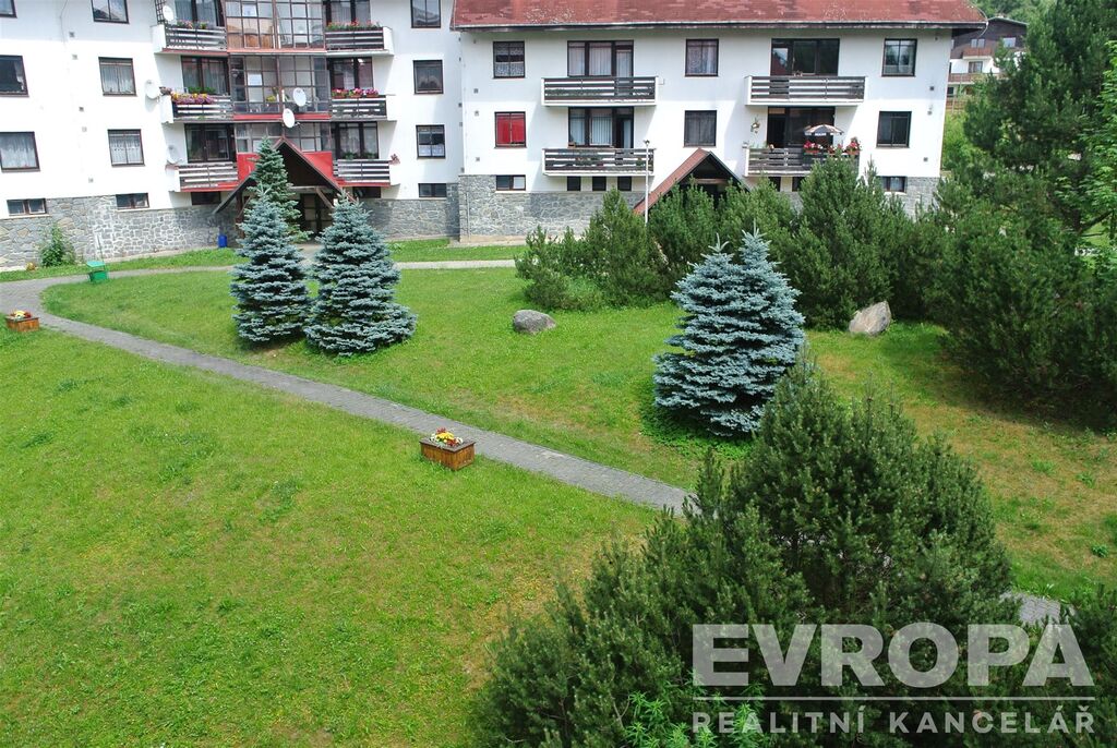 Exkluzivně nabízím k prodeji byt 1+kk v osobním vlastnictví o rozloze 34 m2 v Harrachově, části nazývané Klondajk. Byt se nachází ve třetím podlaží, resp. druhém patře bytového domu. Byt je vybaven kuchyňskou linkou, jídelním stolem se židlemi, sedací soupravou, televizorem a sklápěcím dvoulůžkem, vestavěnou skříní. Sociální zařízení tvoří standartně WC, umyvadlo a sprchovým kout. Topení a ohřev TUV je plynovým kotlem. Byt má balkón s výhledem do parčíku mezi domy. K bytu patří sklepní kóje. Parkování u domu. 100 m od domu se u hypermarketu Norma napojíte na silnici vedoucí do Polska, kde najdete také širokou nabídku obchodů, tržišť a také možností sportovního vyžití.