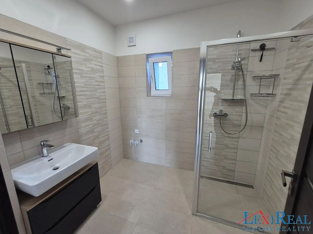 Byt v přízemí má komplatně zařízenou kuchyň - myčka, sklo-keramická deska, touba,lednička s mrazákem. Koupelna se sprchiovým koutem a samostatná toaleta. Ložnice a dětský pokoj. Venkovní žaluzie na dálkové ovládání.