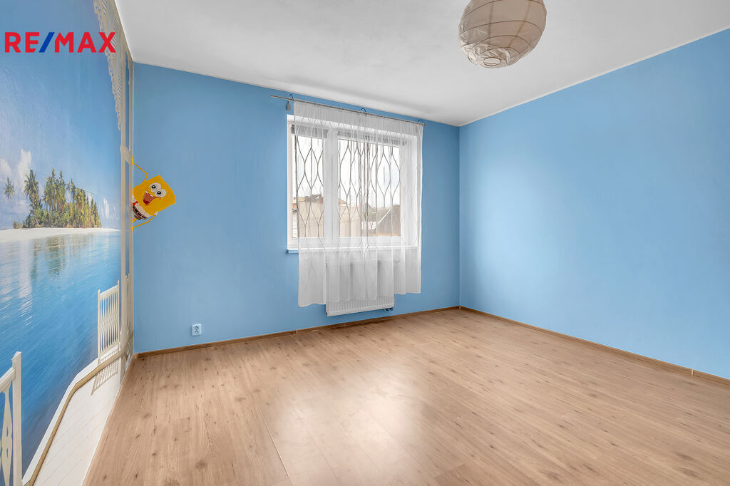 vstupní chodba s vestavnou skříní, obytná kuchyň s myčkou, indukční deskou, elektrickou troubou, mikrovlnkou, ledničkou a dřezem, jídelna s jídelním stolem a  židlemi, obývací kout s pohovkou a tv stolkem, ložnice s vestavnou skříní, dětský pokoj, koupelna s vanou, WC samostatné.
