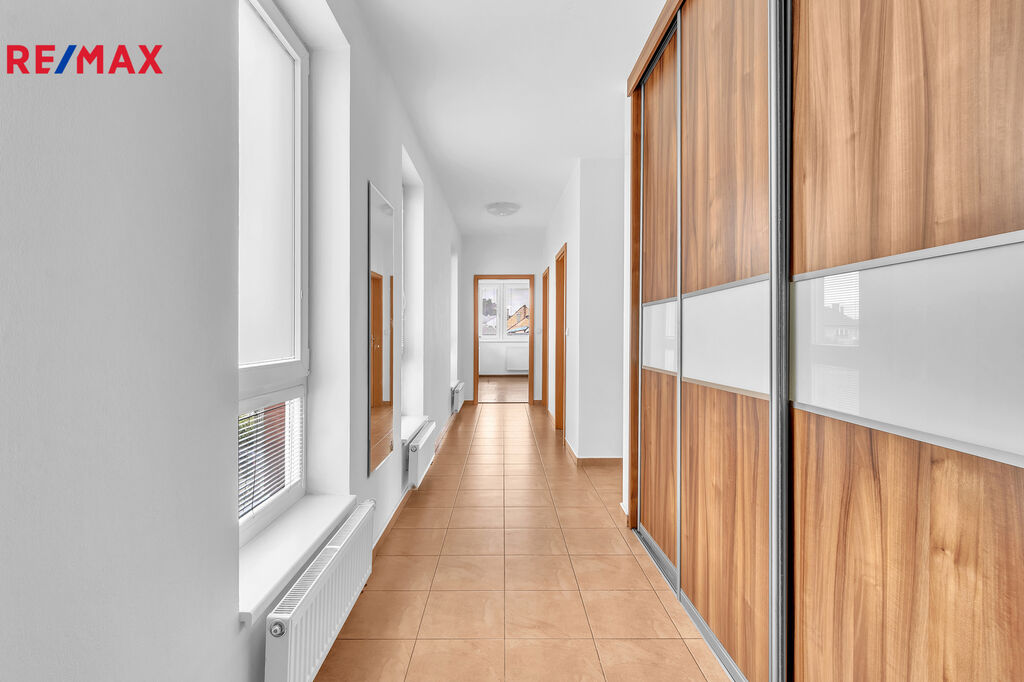 Tento byt se nachází ve 3. nadzemním podlaží o výměře 98m2. K bytu náleží velký balkón ( 7,5m2), který je umístěn do vnitrobloku budovy, což je skvělé nejen kvůli klidu a soukromí. Ve vnitrobloku je zahrádka s dětskými hracími prvky a díky umístění balkonu je dobře vidět na tento prostor, což určitě ocení rodiny s dětmi.