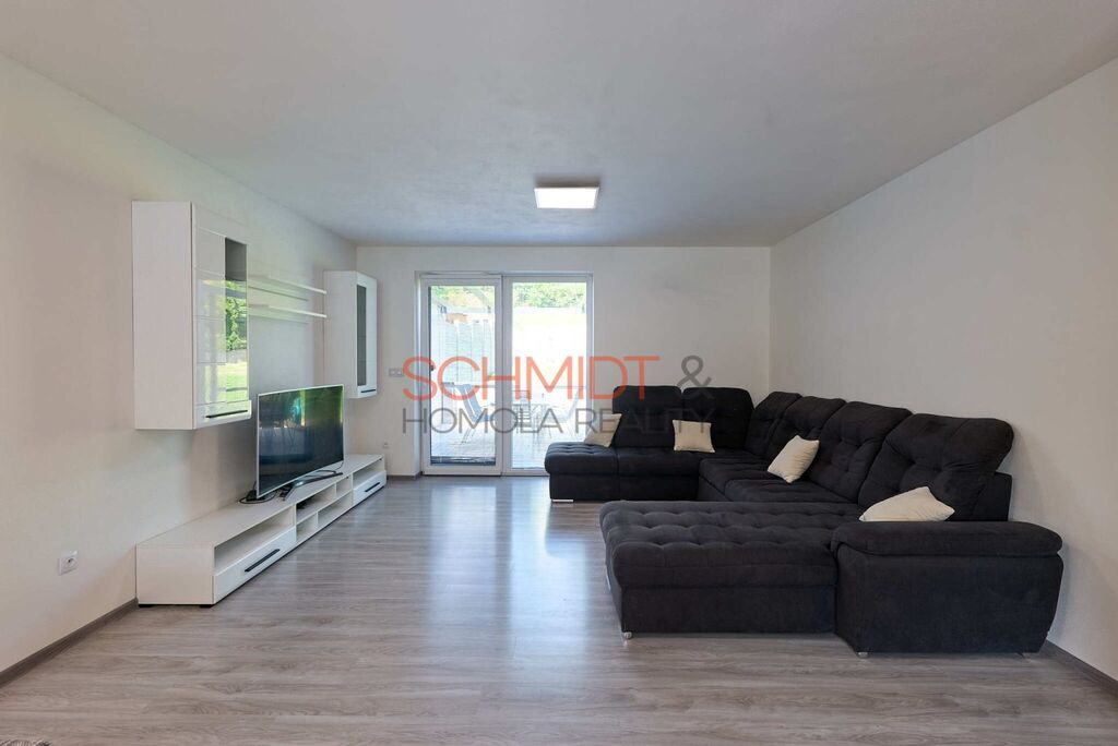 Dispozice uspokojí i větší rodinu. V přízemí najdeme prostorný obývací pokoj s kuchyňským koutem a vstupem na terasu, ložnici, koupelnu se sprchovým koutem, oddělené wc, zádveří při vstupu z ulice i do zahrady. V první podlaží potom tři samostatné neprůchozí pokoje, šatnu, oddělené wc a koupelnu s vanou.