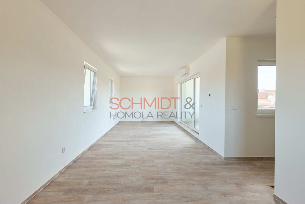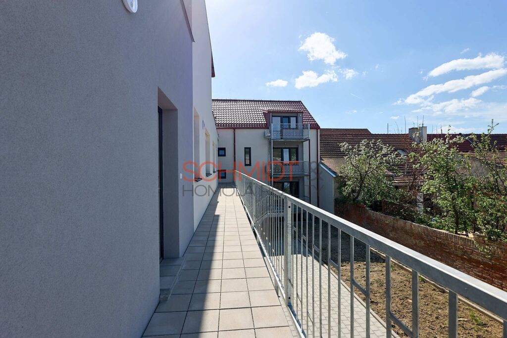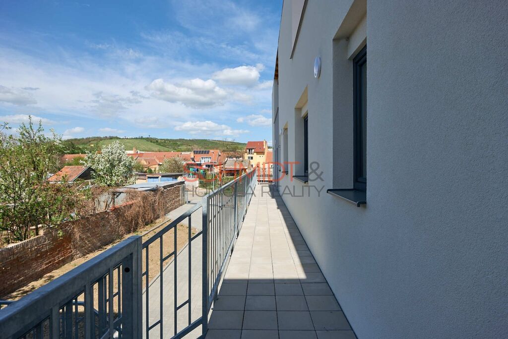 Nabízíme k prodeji novostavbu patrového bytu o dispozici 2kk. Vstup do bytové jednotky se nachází ve druhém nadzemním podlaží v nově zrekonstruovaném bytovém domě na ulici Brněnská v obci Hustopeče. Užitná plocha bytu je 63,4 m². Nad rámec této plochy zde najdeme prostornou terasu přístupnou z kuchyně. K jednotce dále náleží kryté parkovací stání a sklepní kóje. Vytápění je podlahové elektrické, ohřev vody zajišťuje el. bojler. K ochlazení v letních měsících pak poslouží klimatizace, která je nainstalována v obývacím pokoji s kuchyní a v ložnici.