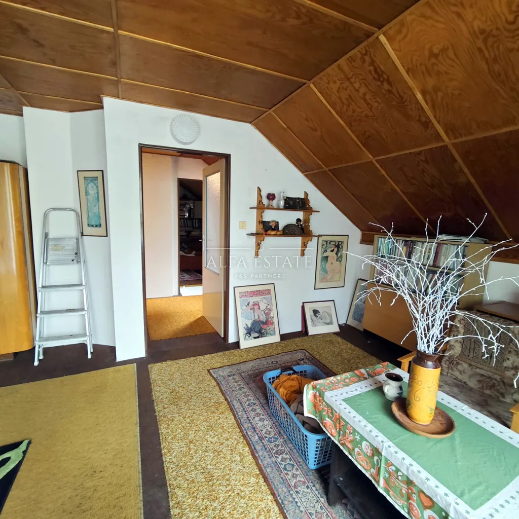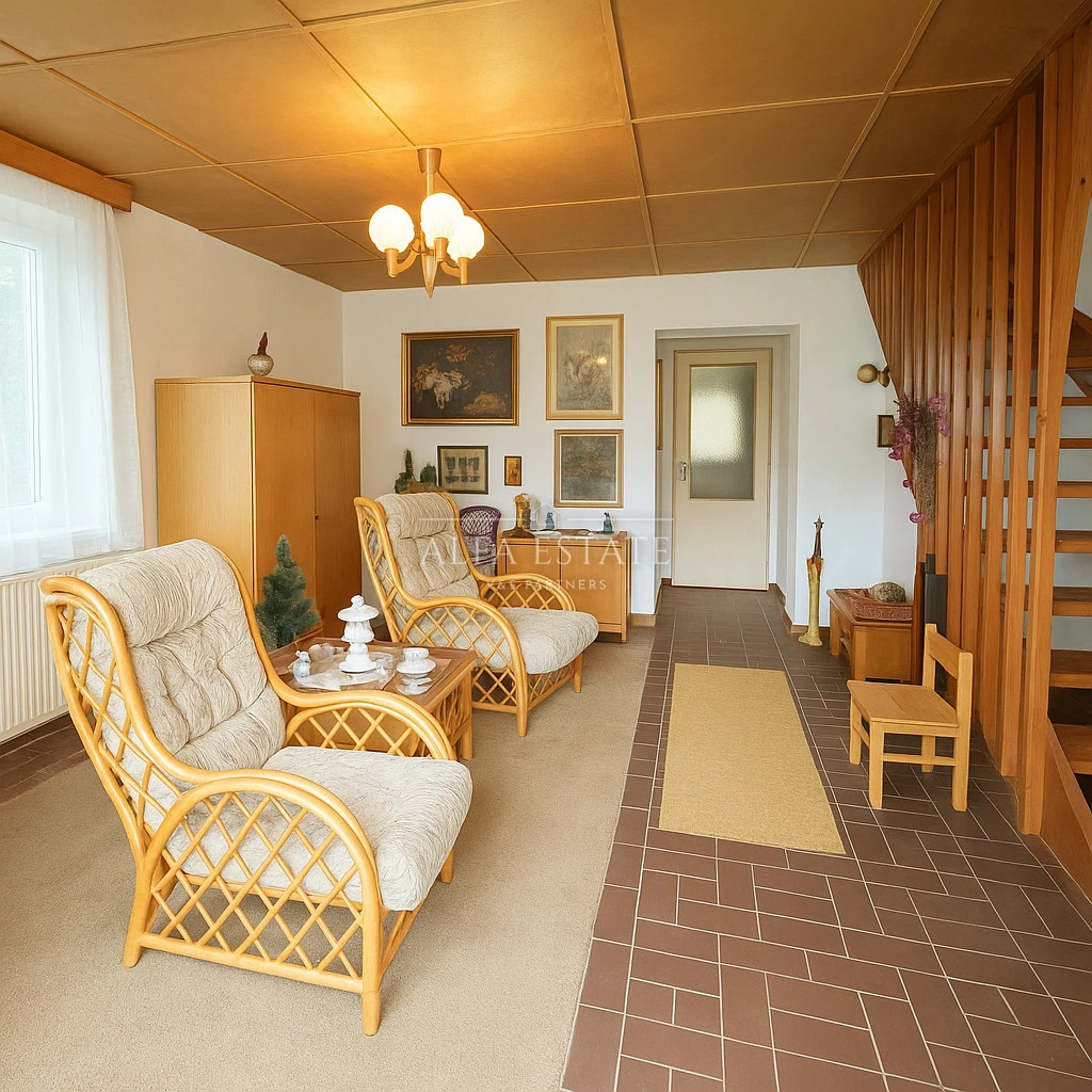 Nabízíme k prodeji samostatně stojící rodinný dům s podsklepením, jedním nadzemním podlažím a obytným podkrovím. Objekt je postaven ze zdiva z plynosilikátových tvárnic, založený na základových pásech. Jedná se o podsklepený dům – využití suterénu pro technické zázemí a skladovací prostory a jedno nadzemní podlaží + obytné podkroví. Konstrukce domu je zděná, sedlová střecha se střešní krytinou z plechových šablon, fasáda- stříkaný břízolit, kabřincový obklad. Stropy: z hurdisek do I profilů, podlahy: PVC a keramické dlaždice. Vnitřní omítky: štukové, částečně dřevěné obklady. Dům sestává ze vstupního prostoru, po pravé straně se nachází velmi prostorný obývací pokoj s balkónem a krbovými kamny, ze kterého vejdeme do kuchyně, sousedící s koupelnou. V obytném podkroví se potom nachází dvě ložnice, k jedné náleží balkon. Vytápění je řešeno elektrokotlem, voda a kanalizace jsou napojeny do veřejného řádu. Jedná se o klasický rodinný dům Nemovitost má solidní konstrukční stav a standardní vybavenost, která umožňuje užívání, i postupnou modernizaci dle představ nového majitele. Výhodu je možnost rozdělení pozemku na druhý stavební pozemek o výměře 800m2 a stavbou rodinného domu 150m2. K tomuto záměru byl vydán souhlas s dělením pozemku, včetně souhlasu na napojení na komunikaci a veřejný vodovod a kanalizaci. Součástí prodeje nemovitosti je také pozemek o výměře 385m2-ostaní plocha, který se nachází nedaleko. Obec Hostín u Vojkovic leží ve Středočeském kraji, v okrese Mělník, přibližně 25 km od Prahy. Díky poloze v úrodné polabské nížině nabízí příjemné a klidné prostředí vhodné pro rodinné bydlení i rekreaci. Hostín je dobře dopravně napojen na okolní města. Autem se do Prahy dostanete během půl hodiny, do Kralup nad Vltavou za cca 10 minut a do Mělníka přibližně za 15 minut. Obcí prochází silnice II/101, která spojuje Neratovice s Kralupy nad Vltavou. Veřejnou dopravu zajišťují pravidelné autobusové linky s návazností na vlaky v Neratovicích a Kralupech nad Vltavou. V obci funguje mateřská a základní škola (1.–5. ročník), pošta a obecní úřad. Pro větší nákupy, zdravotní péči či další služby lze využít blízké Kralupy nad Vltavou, Neratovice nebo Mělník, kde je k dispozici kompletní infrastruktura. Hostín u Vojkovic je tradiční česká vesnice s příjemnou komunitní atmosférou. Obec se stará o společenský život – pořádá kulturní i sportovní akce a podporuje místní spolky. Okolní krajina mezi řekami Labem a Vltavou je ideální pro cyklistiku, procházky i aktivní trávení volného času v přírodě. Hostín u Vojkovic je klidná a dobře dostupná obec nedaleko Prahy s vlastní základní vybaveností a příjemným venkovským prostředím. Díky blízkosti měst Kralupy nad Vltavou, Neratovice a Mělník nabízí ideální kombinaci klidu, přírody a rychlé dostupnosti veškerých služeb. Velmi rádi vám tuto nemovitost představíme při osobní schůzce.