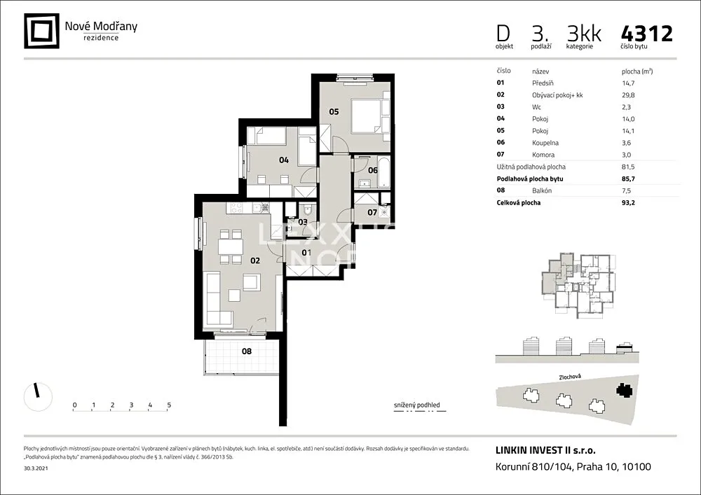 Nové Modřany jsou unikátní projekt, který v sobě spojuje komfort velkoměsta a svobodu přírody. Nadstandardní byt 3+kk o velikosti 85,6 m² vás okouzlí balkónem, který developer zvětšil, aby byt propojil s okolní zelení. Součástí projektu Nové Modřany je venkovní posilovna, kavárna, 3 dětská hřiště s trampolínami a na východní straně vyrůstá park. V projektu také najdete kočárkárnu, stojany na koloběžky a elektrické nabíječky na auta.