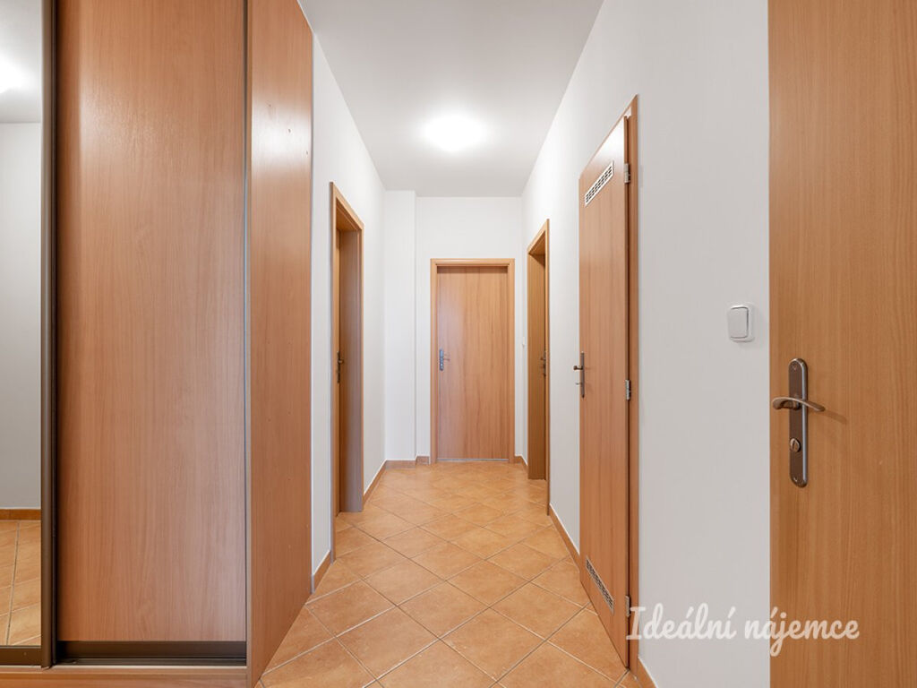 Byt je částečně vybavený, což dává novým nájemníkům možnost dotvořit si interiér podle vlastního vkusu. Moderní kuchyňská linka je plně vybavena – najdete zde lednici s mrazákem, elektrickou a mikrovlnnou troubu, indukční varnou desku, digestoř i myčku nádobí. Součástí kuchyně je také praktická komora s pračkou. Na kuchyň plynule navazuje obývací pokoj s pohodlnou sedací soupravou, jídelním koutem a přímým vstupem na balkon, který poskytuje příjemné místo k odpočinku. Byt dále nabízí dva samostatné pokoje, které lze využít jako ložnice, dětský pokoj či pracovnu. Koupelna je vybavena vanou, umyvadlem a pračkou, toaleta je samostatná. Velkou výhodou jsou také dvě úložné místnosti, ideální například jako šatna nebo komora.