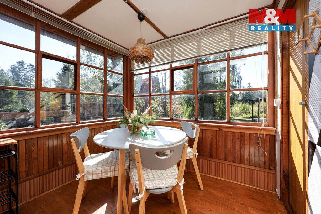 Ve výhradním zastoupení nabízíme k prodeji krásnou chatu s pozemkem Domašově nad Bystřicí. Tato montovaná a udržovaná chata o dispozici 2+kk je ideálním útočištěm pro milovníky přírody. Nachází se na okraji obce, obklopena zelení luk a lesů, na pozemku o rozloze 509 m². Užitná plocha chaty je 38 m² a sestává z prosklené verandy s jídelním koutem, obývací části s kuchyňským koutem a samostatné ložnice. Koupelna je vybavena vanou, umývadlem a WC. Komfort doplňuje menší terasa a dřevěná pergola v zahradě. Chata je napojena na obecní vodovod a elektřinu, vytápění zajišťují krbová kamna. Ohřev vody je elektrickým bojlerem. K dispozici je také kůlna na dřevo a nářadí. Dojezd k chatě je po zpevněné obecní komunikaci. S financováním vám rádi pomohou naši hypoteční specialisté. Zavolejte pro více informací a domluvte si prohlídku.