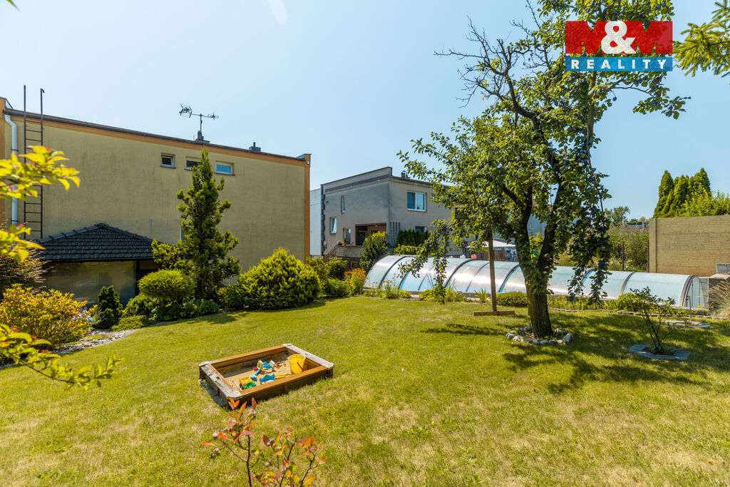 Nabízíme k prodeji podsklepený, zděný rodinný dům 7+1 na atraktivní adrese v klidné části obce Hlučín. Dům lze předělat na dvougenerační, obě podlaží mají sociální zázemí a rozvod vody ke kuchyni. Při vstupu vás vítá prostorná, otevřená, stylová hala s krbem, z které se vchází do obytného přízemí. To disponuje 2 pokoji, prádelnou, WC a místnosti v rekonstruovaném stavu, nutno dodělat. Po schodišti se dostaneme do 1.NP, kterému dominuje slunný obývací pokoj propojený s jídelnou, kuchyň, 2 pokoje, koupelna, WC a komora. Z obývacího pokoje je vstup na balkón s výhledem do okolí. K domu patří pečlivě udržovaná zahrada se zastřešeným bazénem s protiproudem a vířivkou a zasklená terasa s příjemným posezením. Vjezd do domu je bránou na dálkové ovládání. Parkování zajištěno přístřeškem pro 3 auta a prostor na nádvoří. Dům je napojen na zabezpečovací systém. Topení plynovým kotlem, veřejný vodovod je zaveden, dům je ale napojen na studnu na zahradě, veřejná kanalizace je. Více info v RK.