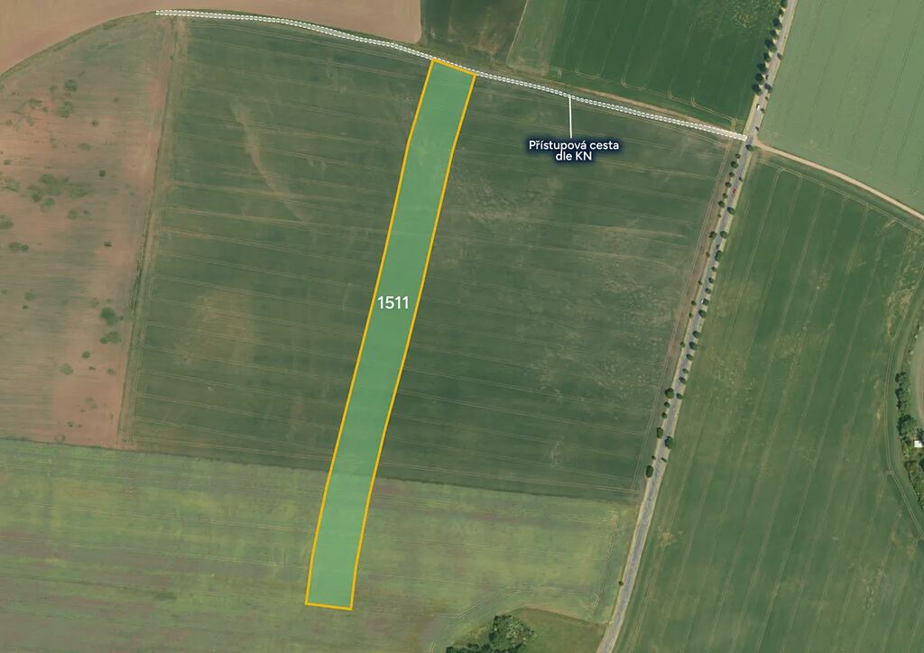 Pozemek je zapsán na listu vlastnictví 2231 pod parcelním číslem 1511. Leží jižně od Velvar v rovinatém zemědělském bloku. Je pohodlně přístupný po cestě zemědělskou technikou. Současný vlastník zde uzavřel mimořádně výhodnou pachtovní smlouvu. Výše pachtovného je nadstandardních 6 000 Kč/ha ročně. Navíc je výpovědní lhůta pouze dvanáct měsíců. Tato pachtovní smlouva při koupi přejde na nového vlastníka pozemku.