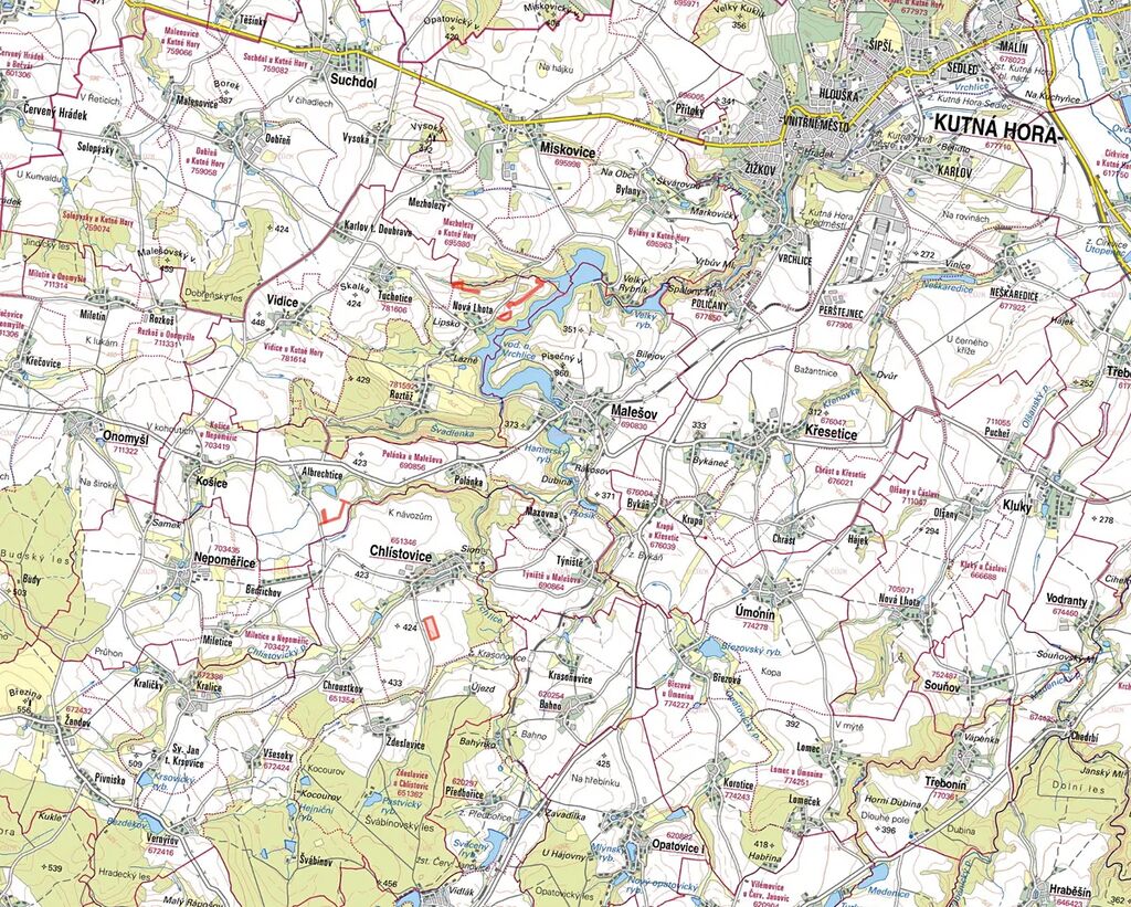 – Roztěž (LV 35): parcely č. 428, 429, 448, 555/11, 555/13, 565, 573
