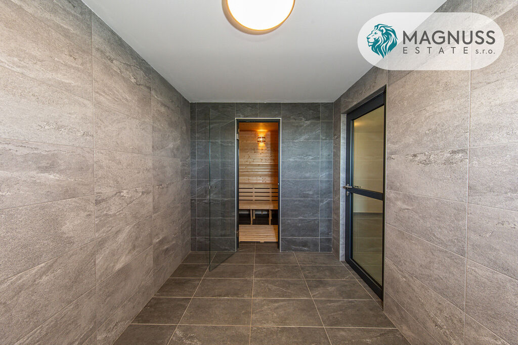 Dům je orientován na východ a navržen tak, aby komfortně sloužil dvěma samostatným apartmánům, každý o podlahové ploše 98 m², které mají společné zázemí v přízemí. V 1. nadzemním podlaží se nachází prostorná společenská místnost, sauna a technické zázemí. Celý prostor je proveden ve světlých tónech a přírodním stylu, který navazuje na okolní krajinu a působí velmi příjemně.