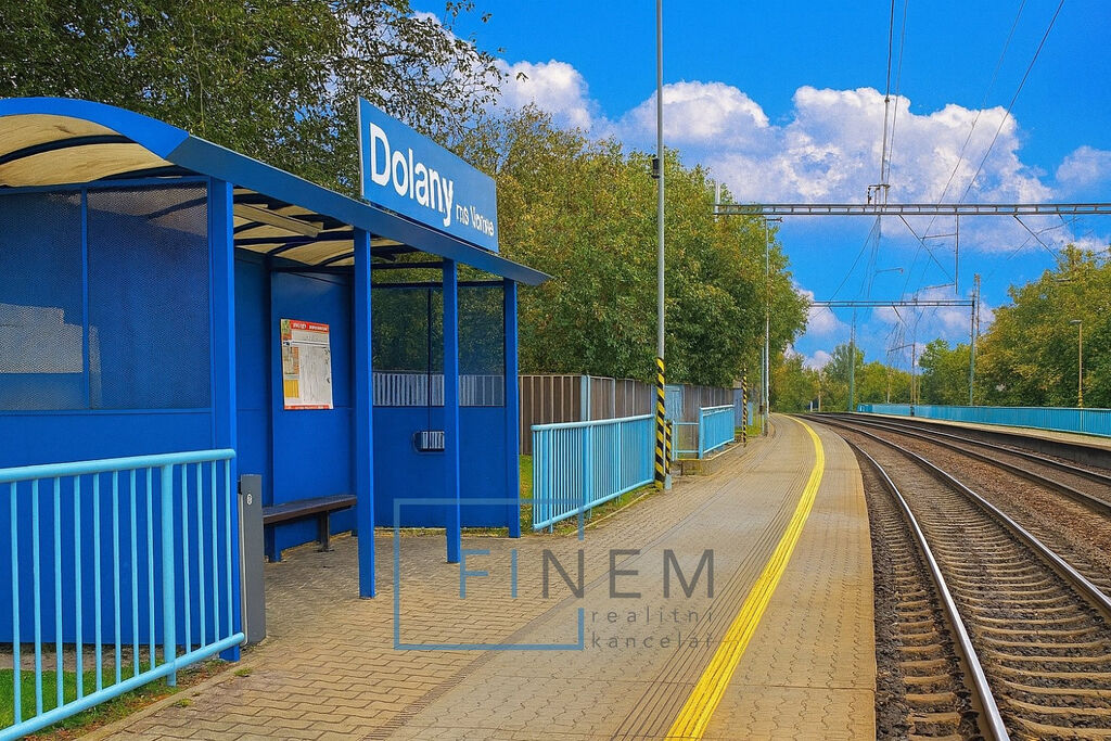 Dopravní dostupnost je dalším významným benefitem této lokality. Vlaková zastávka Dolany u Prahy se nachází pouhých 240 metrů od pozemku, tedy přibližně 4 minuty chůze. Přímé vlaky linky S4 vás dovezou na Prahu – Masarykovo nádraží za přibližně 22 minut, přičemž spoje jezdí každých 30 minut. Do Prahy se tak dostanete rychle a pohodlně, ať už za prací nebo za zábavou. Autem trvá cesta do hlavního města přibližně 25 až 30 minut.