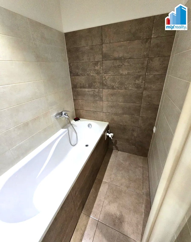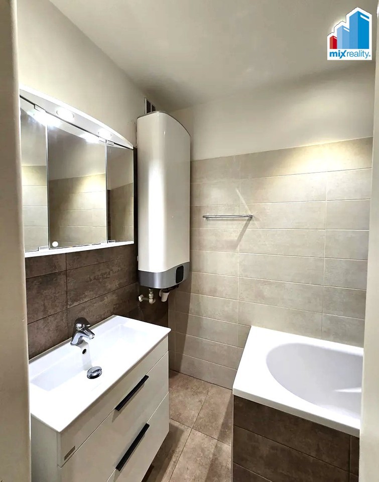 Dispozice bytu zahrnuje předsíň, pokoj s kuchyňským koutem, samostatný pokoj, koupelnu s vanou a oddělené WC.