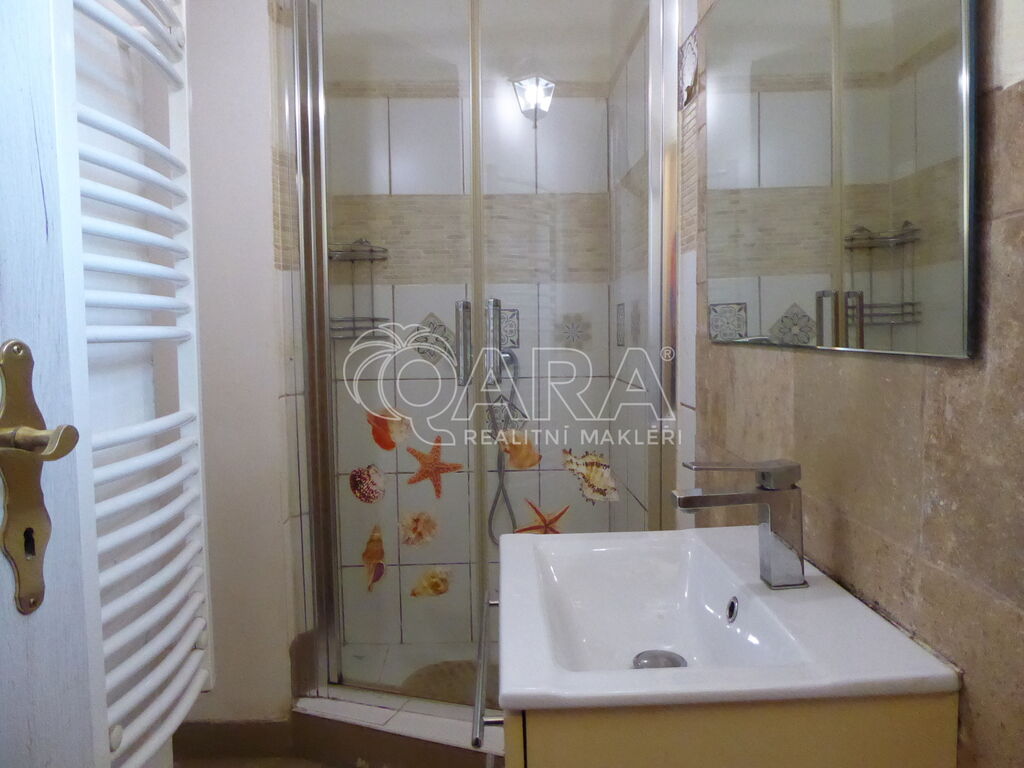 Byt se nachází v přízemí bytového domu s přímým vstupem na uzavřený dvorek. Obývací pokoj s kuchyňským koutem nabízí dostatek prostoru. Na něj navazuje koupelna se sprchovým koutem a toaletou. Po několika schůdkách přejdete do samostatné ložnice.