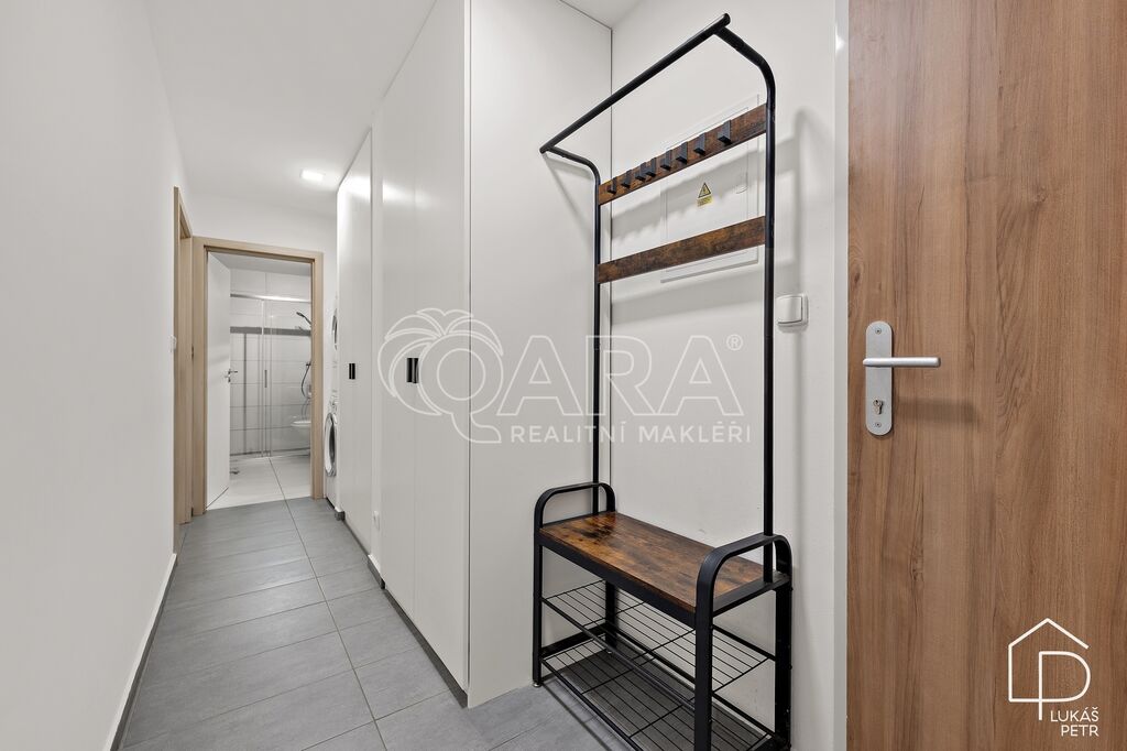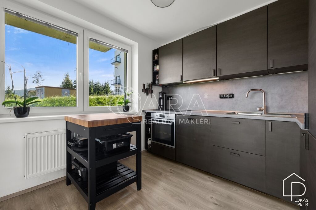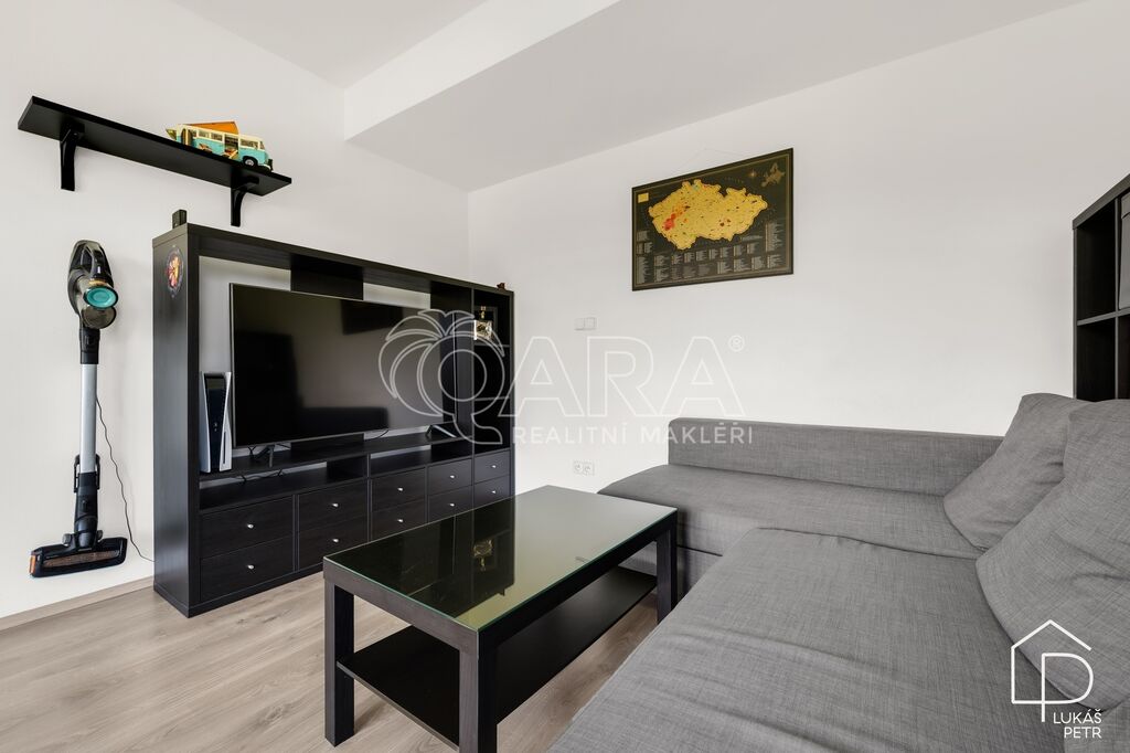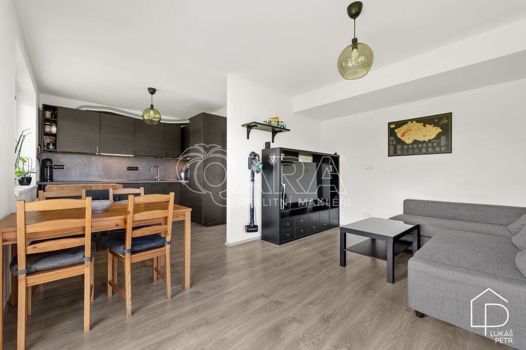 Dispozice dává smysl – obývací pokoj s kuchyňským koutem jako hlavní prostor bytu, samostatná ložnice a koupelna se sprchovým koutem a WC. Kuchyňská linka Ikea se spotřebiči, plovoucí podlahy, plastová okna. Vytápění je řešeno centrálně z domovní plynové kotelny, energetická třída B.