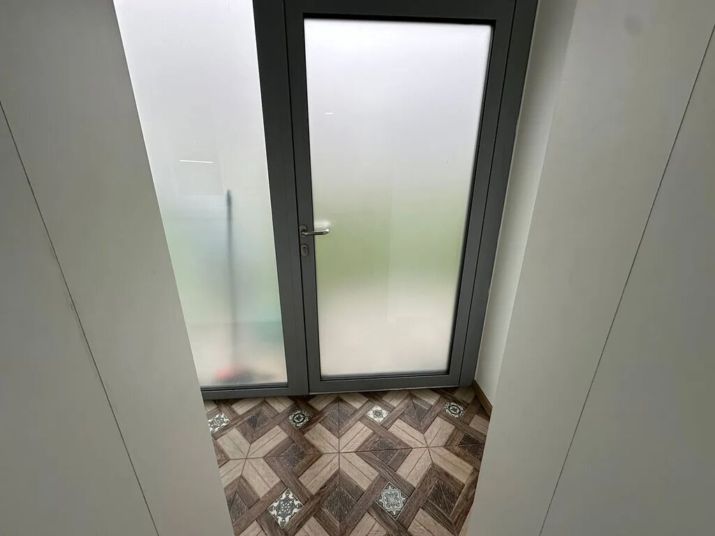 V bytě je položena dlažba a v pokojích plovoucí podlaha.