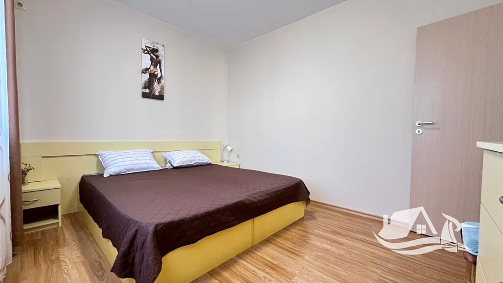 Uvnitř vás přivítá útulný obývací pokoj s kuchyňským koutem, kam proudí přirozené světlo z francouzských oken. Z obývací části vstoupíte do samostatné ložnice, která poskytuje klid a soukromí pro chvíle odpočinku. Na balkoně si můžete vychutnávat ranní kávu s výhledem na moře a pocit, že den začíná přesně tak, jak má.