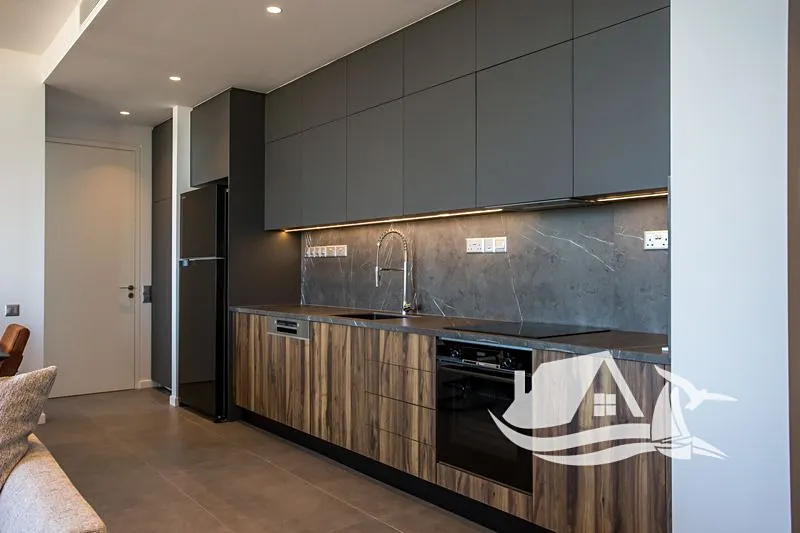 Vychutnejte si rozsáhlé výhledy na moře z celých stěn oken s dvojitými skly a prosklených předních balkonů. Otevřený obývací prostor byl odborně navržen pro plně moderní kuchyň se špičkovými technickými spotřebiči. Velký společný bazén, krytá posilovna, venkovní dětský park, soukromé skladovací prostory a podzemní parkoviště dělají z tohoto apartmánu dokonalý přímořský domov.