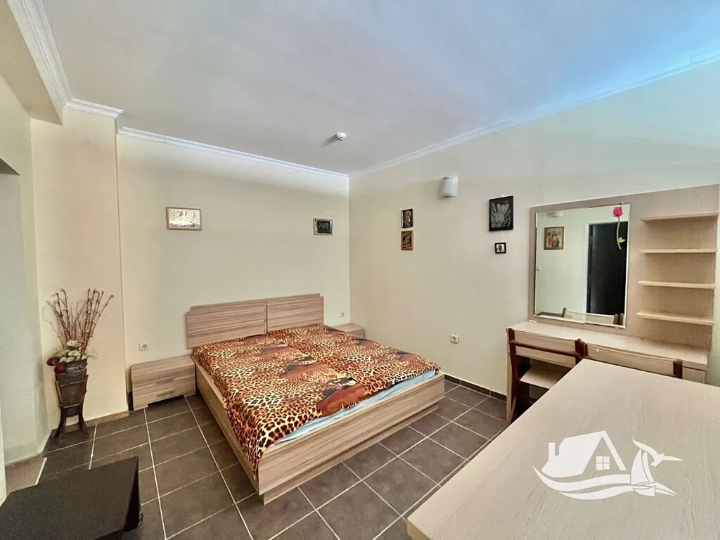 Interiér je moderně zařízený, s dostatkem přirozeného světla a útulnou atmosférou. Apartmán je plně vybaven a připraven k okamžitému nastěhování – ideální volba pro pár, jednotlivce nebo jako rekreační bydlení u moře.