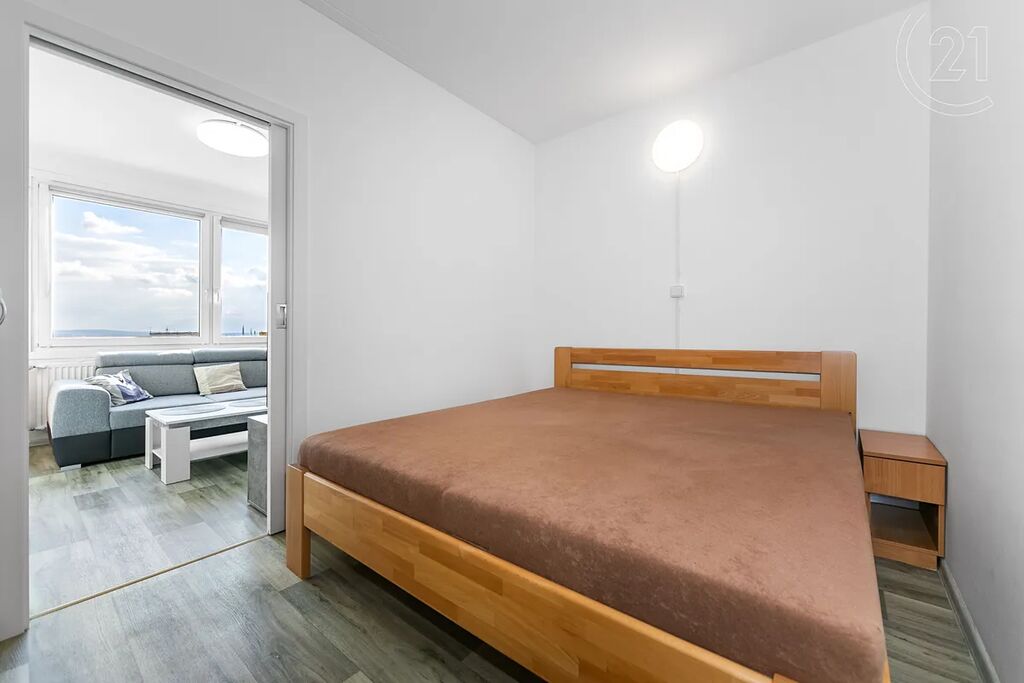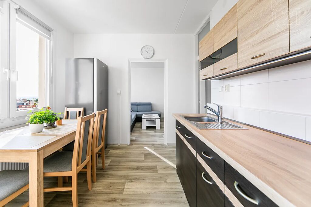 Byt se nachází v 10. patře revitalizovaného panelového domu a prošel částečnou rekonstrukcí. Je zde například již zděné jádro, nové rozvody vody i elektřiny nebo kuchyňská linka.