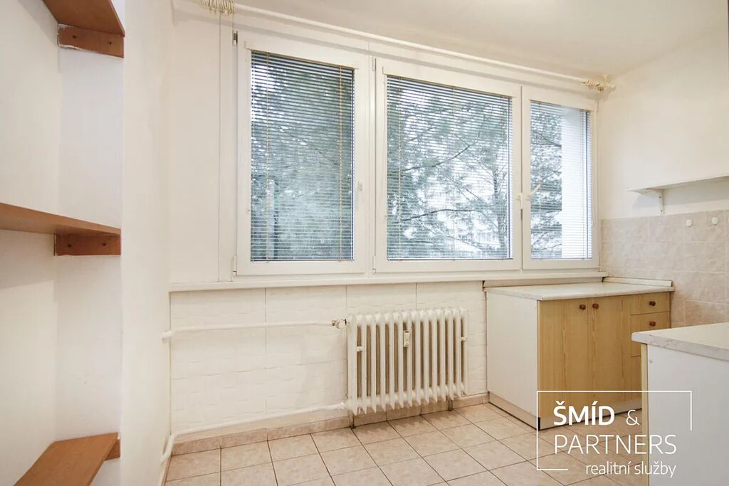 Byt je vybaven kuchyňskou linkou s plynovým sporákem a el. troubou. V předsíni je prostorná vestavěná skříň a dále je odtud vstup do samostané koupelny, toalety a obývacího pokoje.