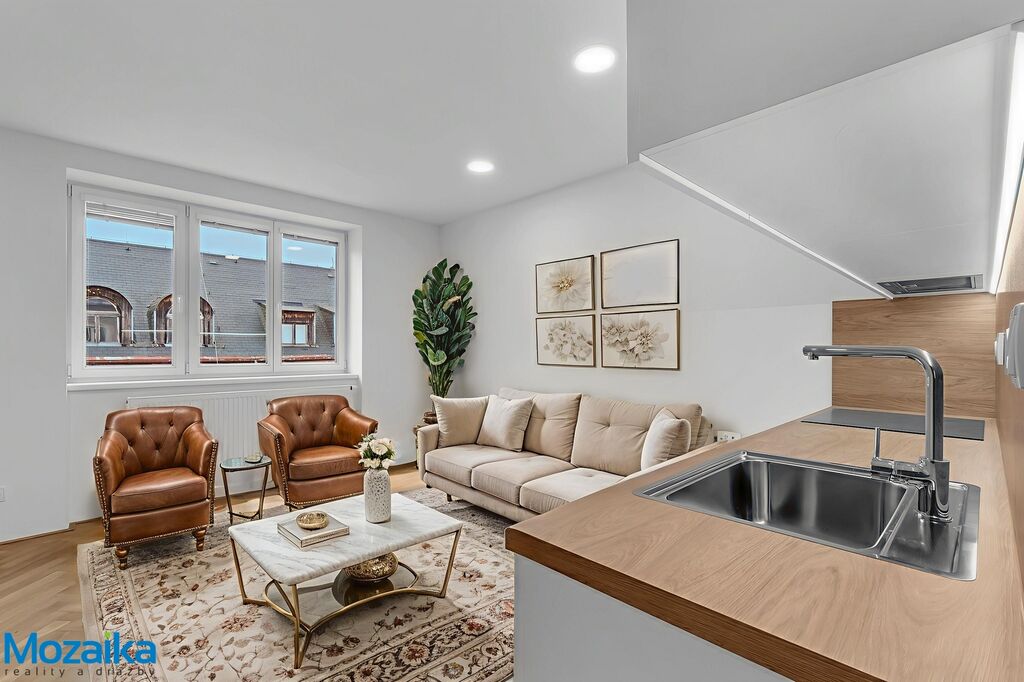 Celý byt prošel kompletní zdařilou rekonstrukcí v moderním stylu. Na podlahách se střídají krásné zachovalé parkety s velkoformátovou dlažbou, která dodává prostorům luxusní vzhled. Každý detail byl pečlivě promyšlen tak, aby vám bydlení přinášelo maximální komfort a radost. K bytu náleží také praktická sklepní kóje v suterénu domu a bonusem je možnost využívání společného dvorku za domem, což je v centru města skutečnou vzácností.