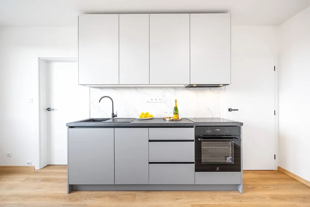 - nová kuchyňská linka vyrobena na míru se spotřebiči (značková elektrická trouba, myčka, indukční deska, digestoř, osvětlení, dřez)
