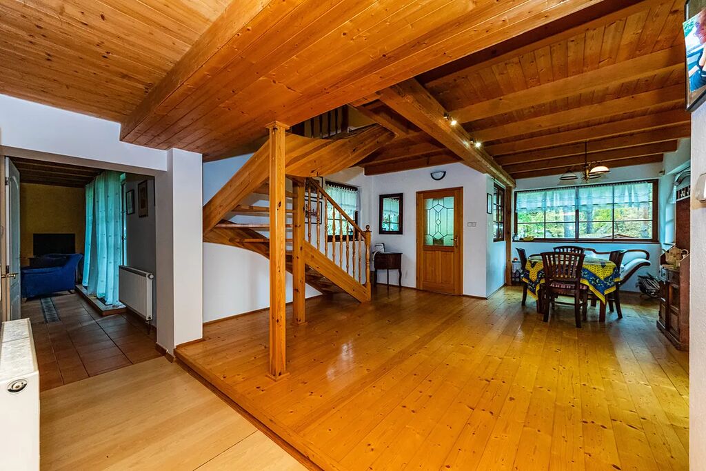 Udržovaný rodinný dům situovaný v krásné přírodě v klidné části obce Kosoř. Dům sestává v přízemí se vstupní předsíně obývacího pokoje s jídelnou a kuchyní, samostatného pokoje s krbem, koupelny s vanou a WC, v patře se nachází 3 samostatné pokoje a koupelna se sprchovým koutem a WC. Na pozemku je dále zahradní domek o výměře 40 m2 a 2 zastřešená parkovací stání. Dobrá dopravní dostupnost ke stanici metra B Smíchovské nádraží či Anděl.