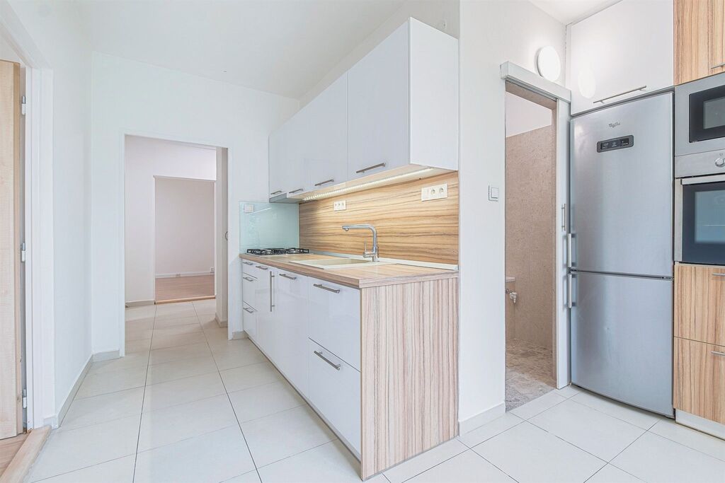 Dispozice: vstup chodba kuchyně s jídelním koutem tři samostatné pokoje koupelna s vanou a prostorem na pračku samostatné WC. K bytu náleží samostatný sklep v suterénu budovy.